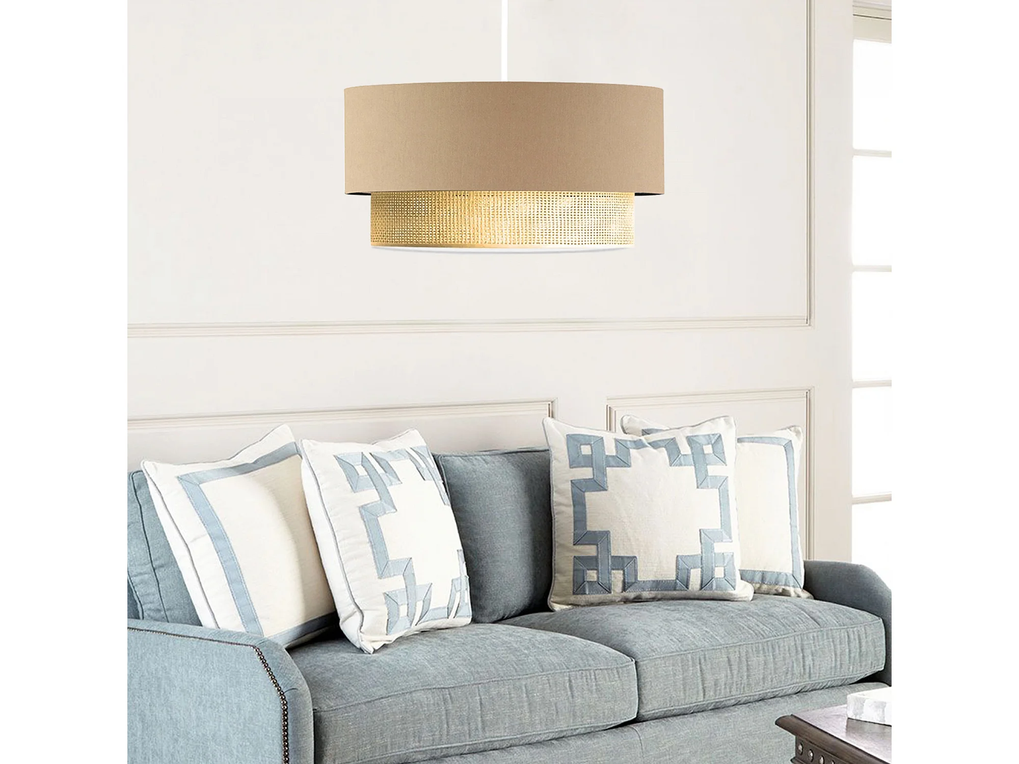 Luminaire suspendu cylindre beige au design épuré