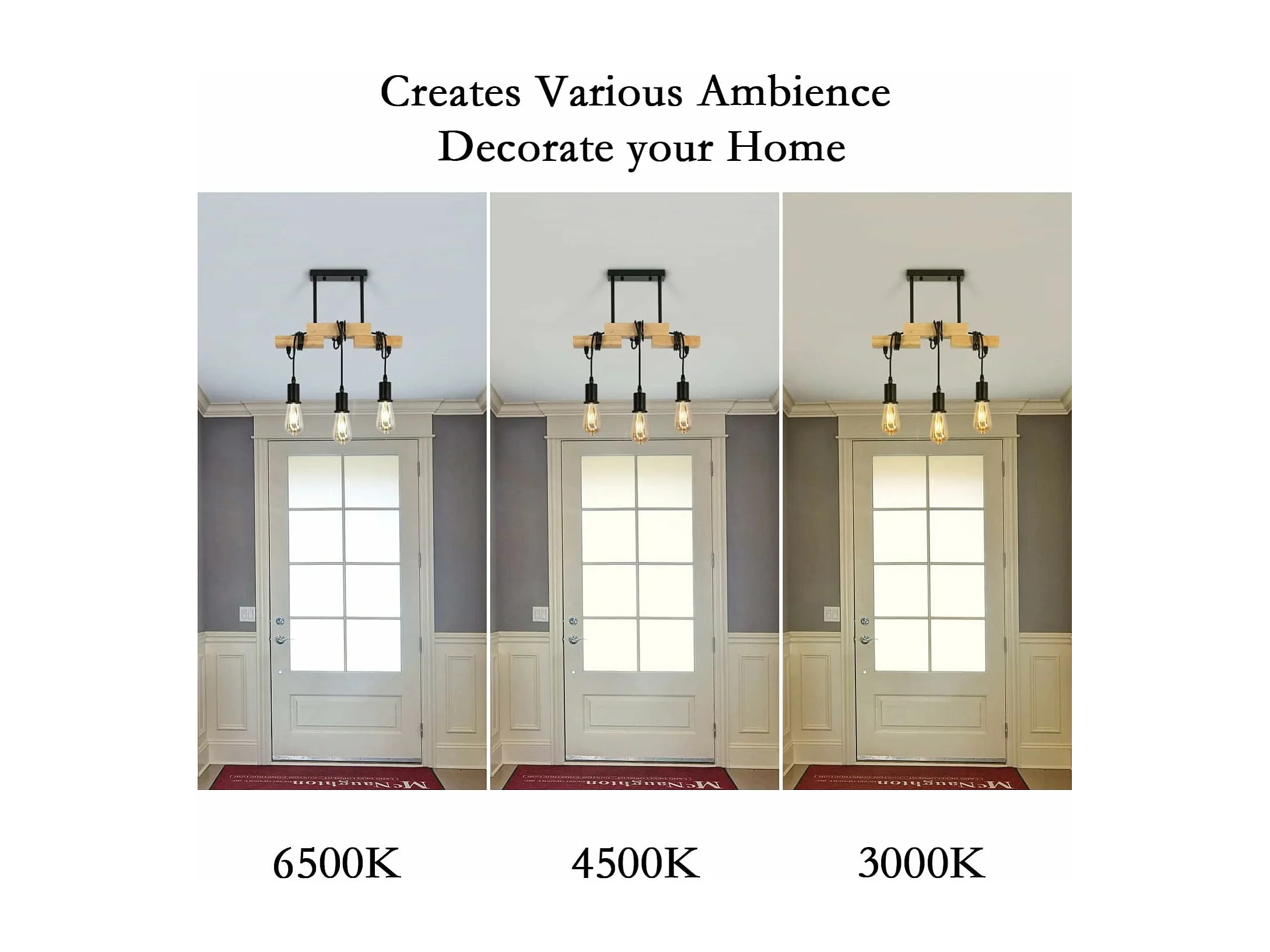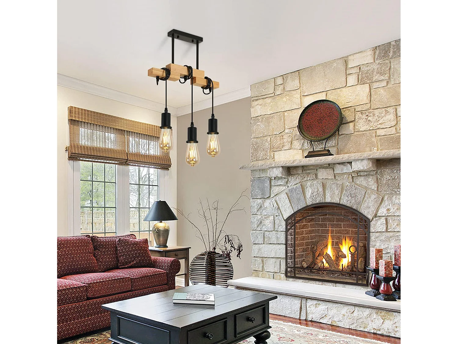 Suspension Luminaire Industriel en Bois avec 3 Têtes d'Éclairage E27 pour Salon Cuisine Salle à Manger Chambre