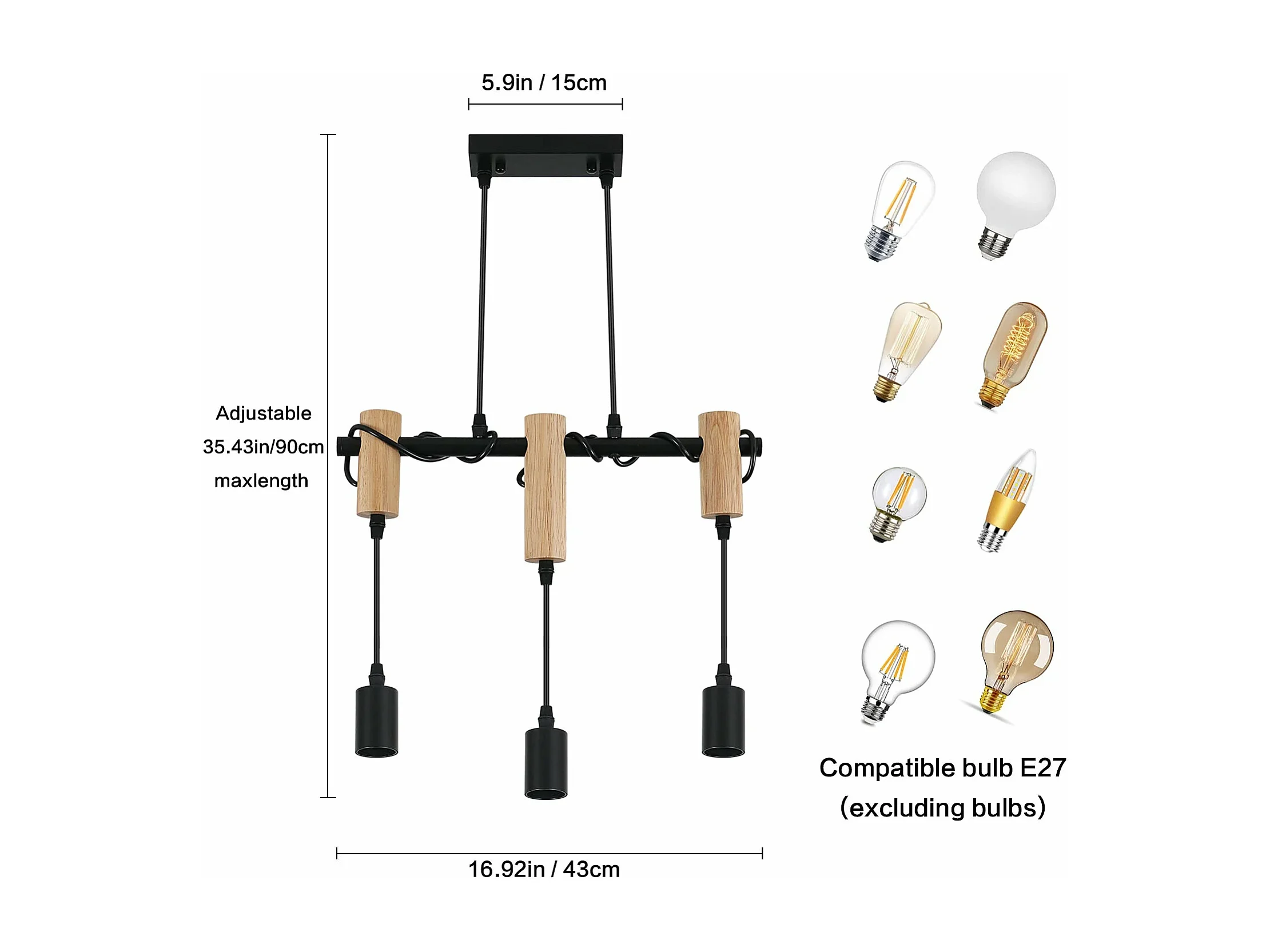 Suspension Luminaire Industrielle Rétro en Métal à 3 Lumières avec Câble Réglable Douilles E27 pour Salle à Manger, Salon, Studio, Couloir, Café, Bar