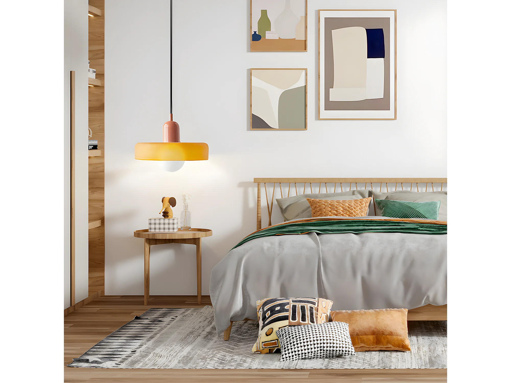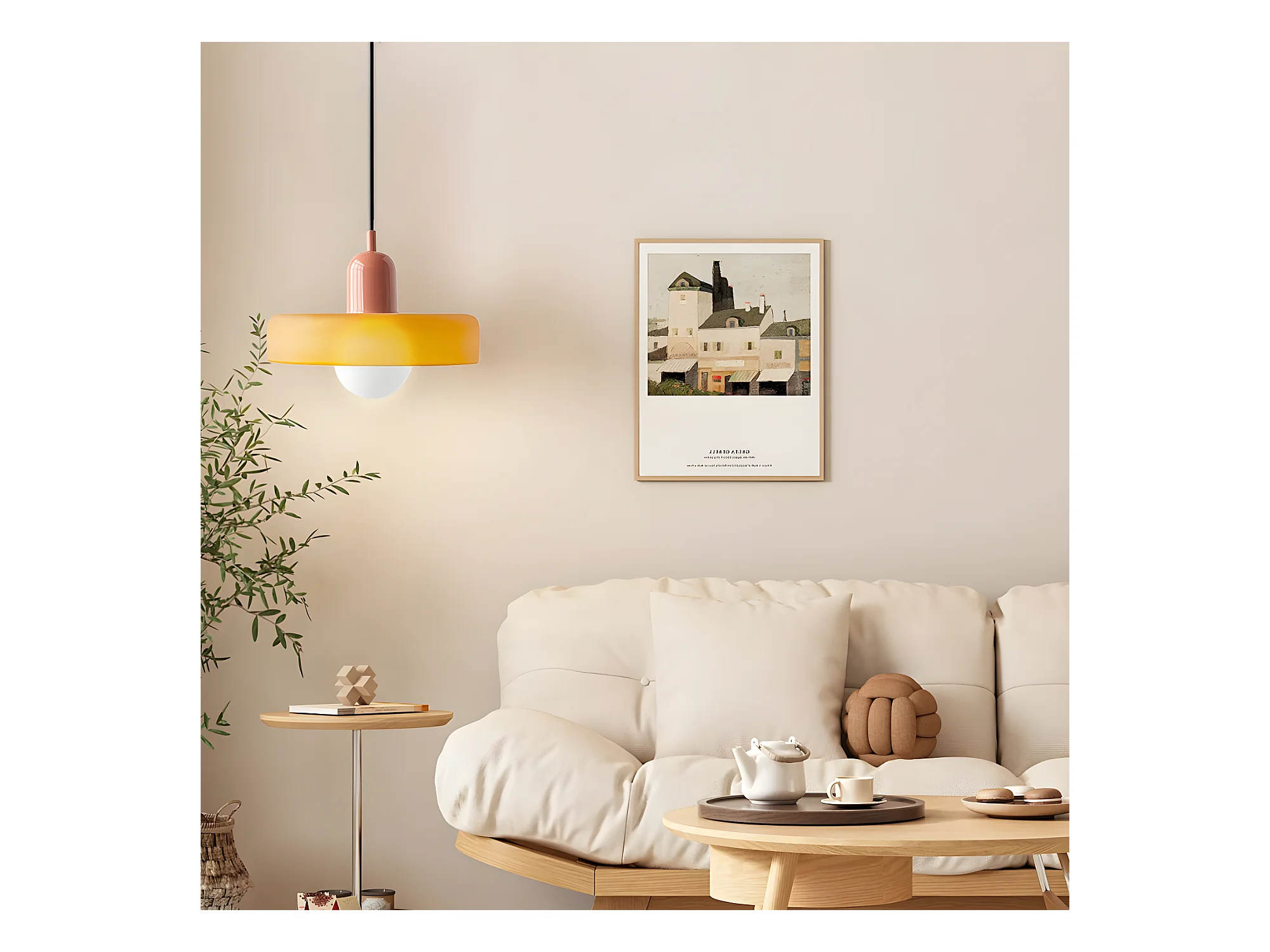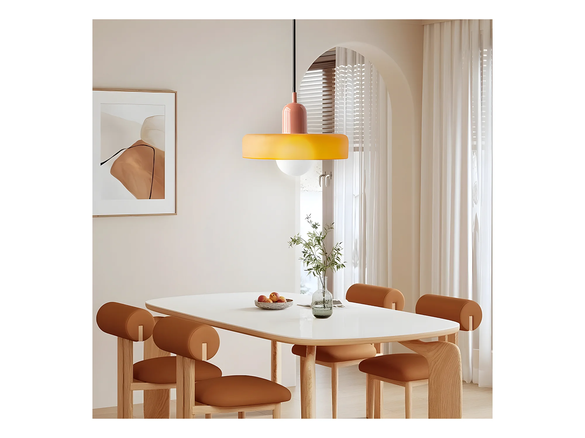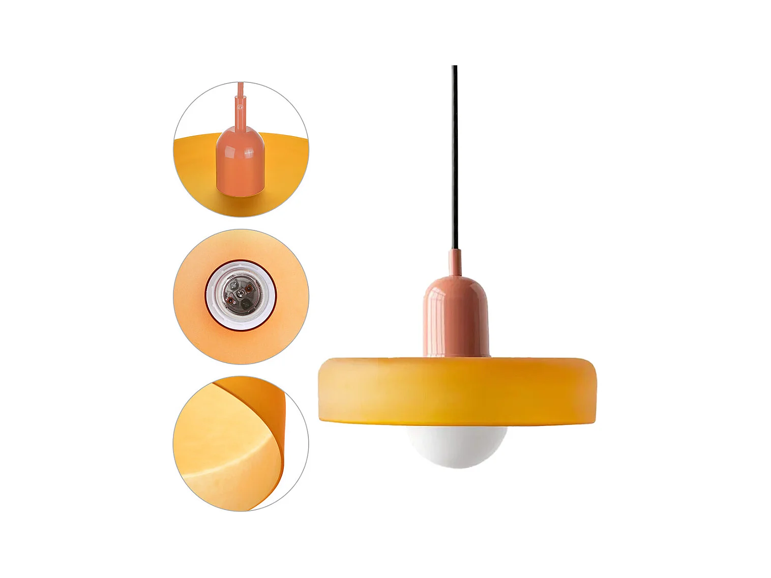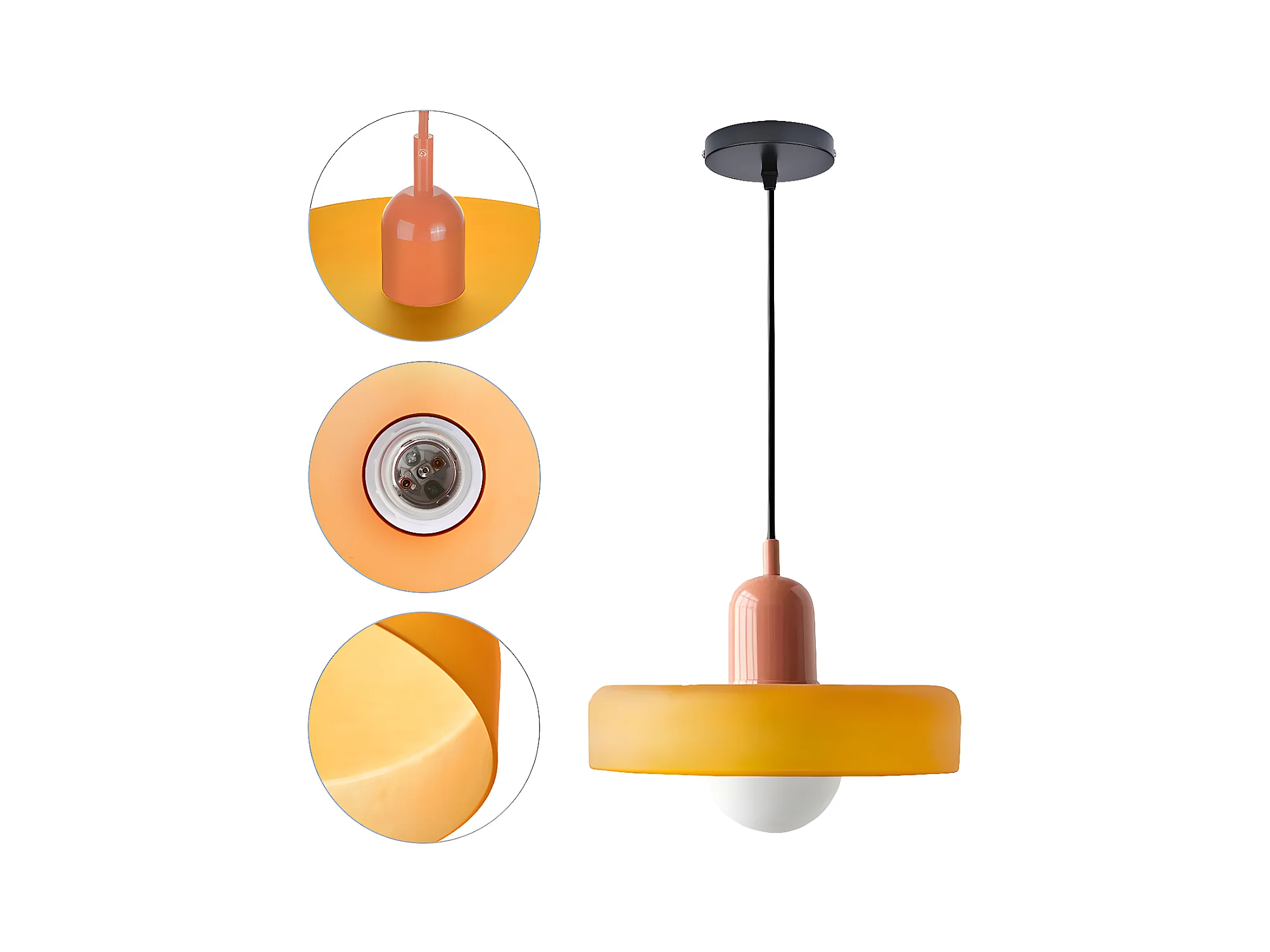 Suspension luminaire orange verre d35cm x h22cm