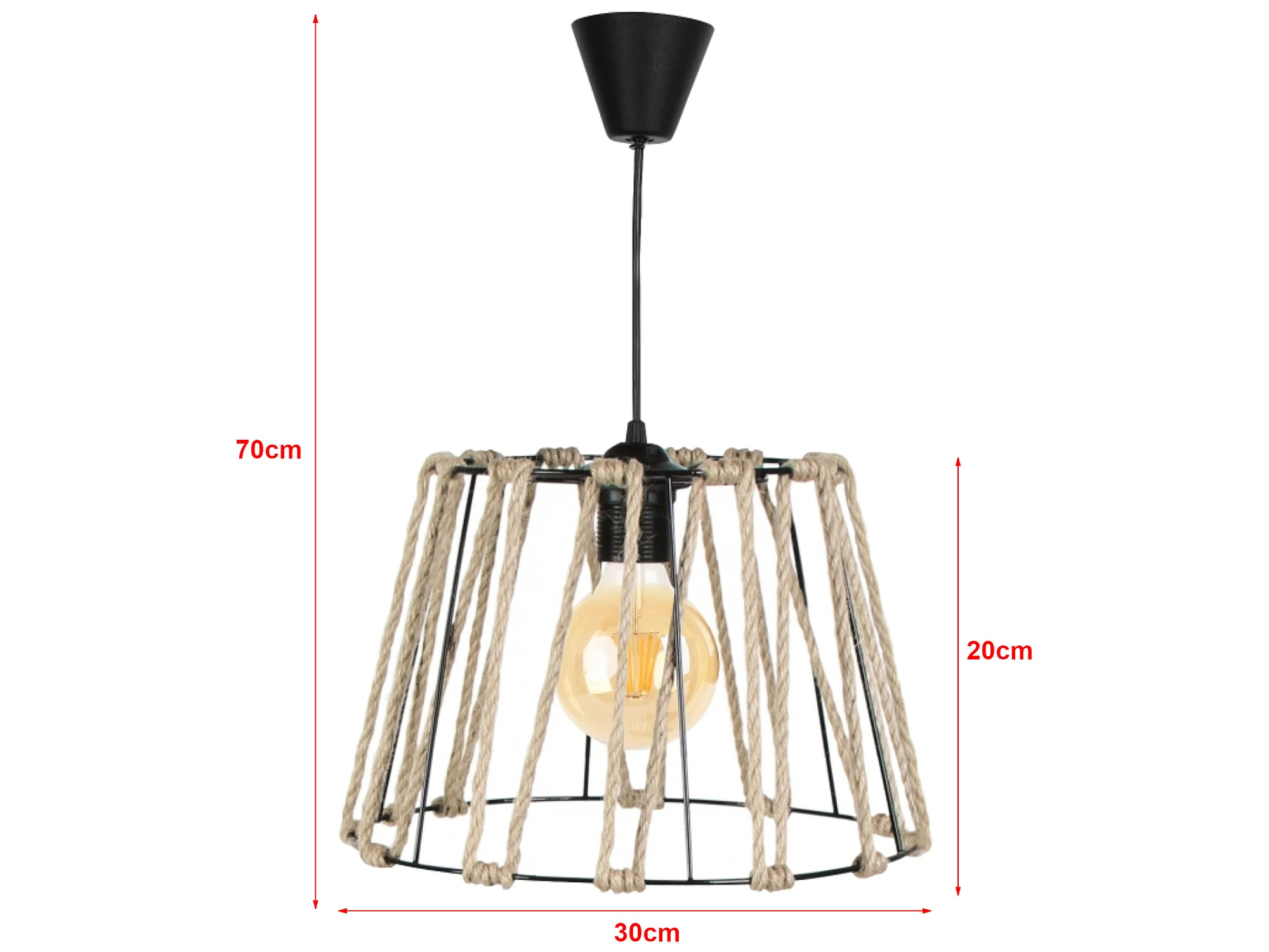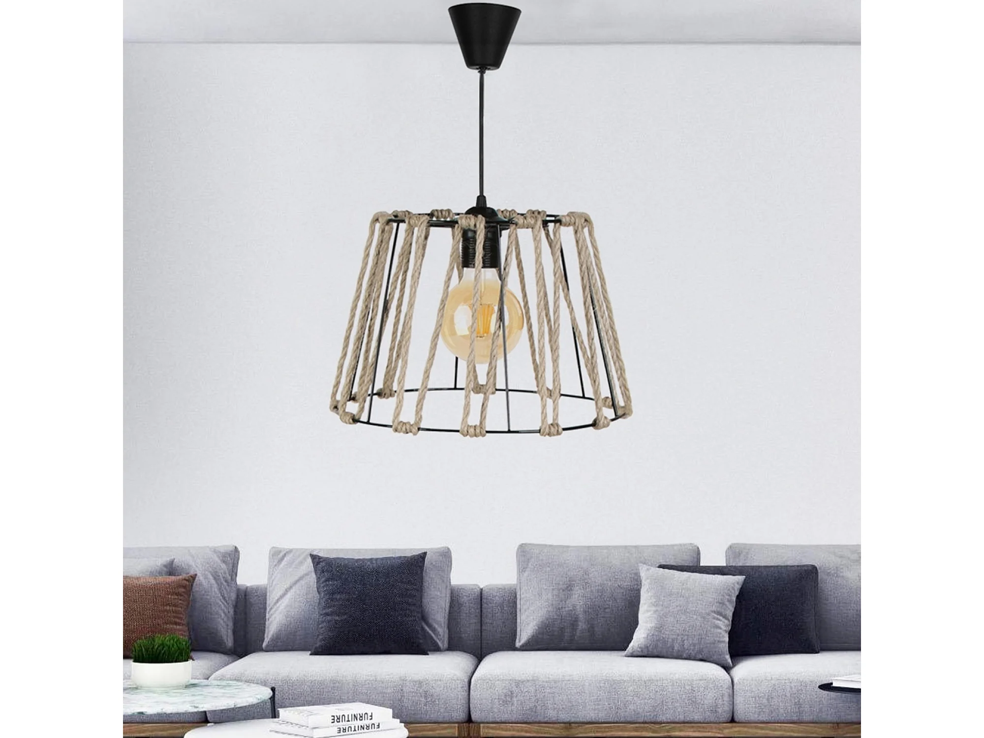 Suspension Halifax en ABS et corde de jute hauteur 60 cm E27 noir / naturel [lux.pro]