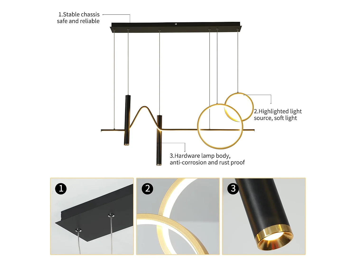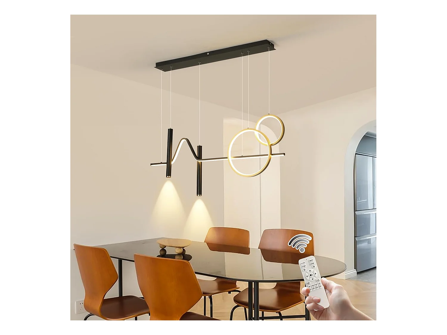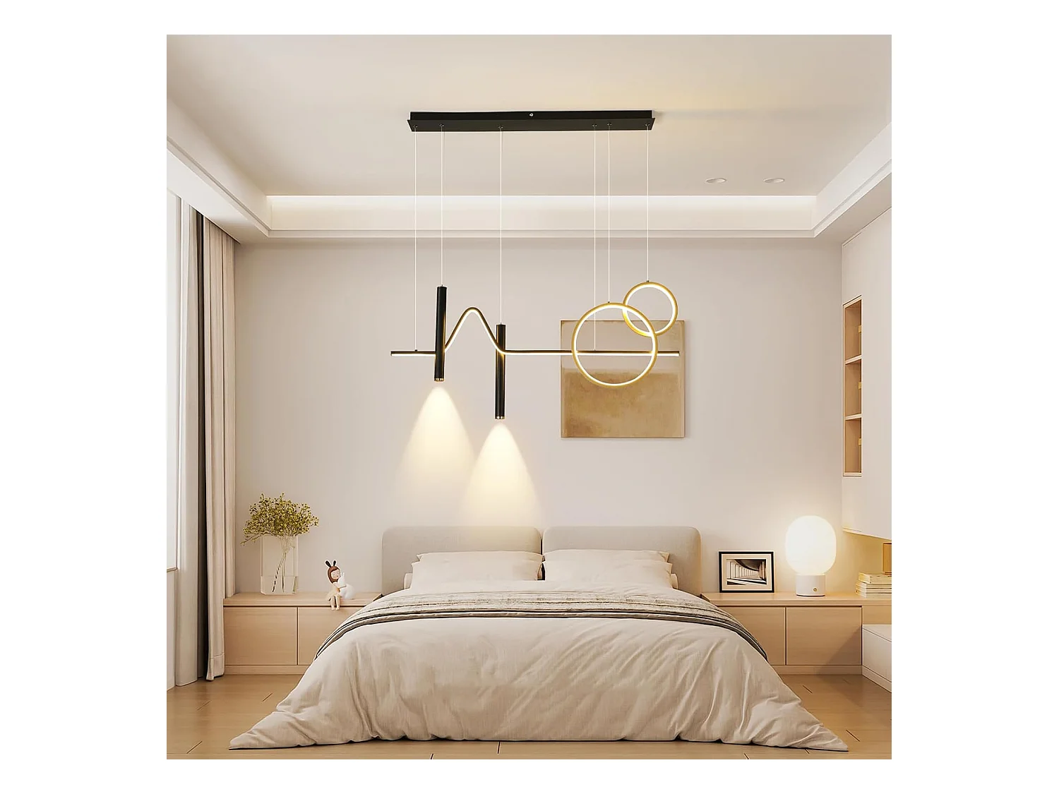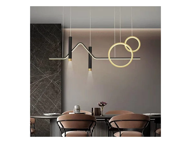 Suspension moderne LED double ronde avec spot en aluminium, 45W onde linéaire, noir or dimmable avec télécommande, 220V, pour hôtel bureau café restaurant