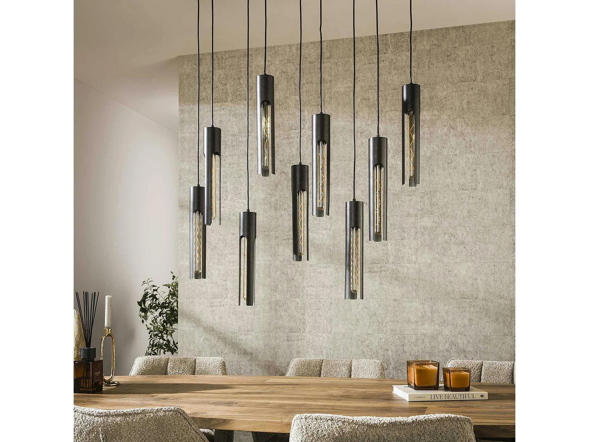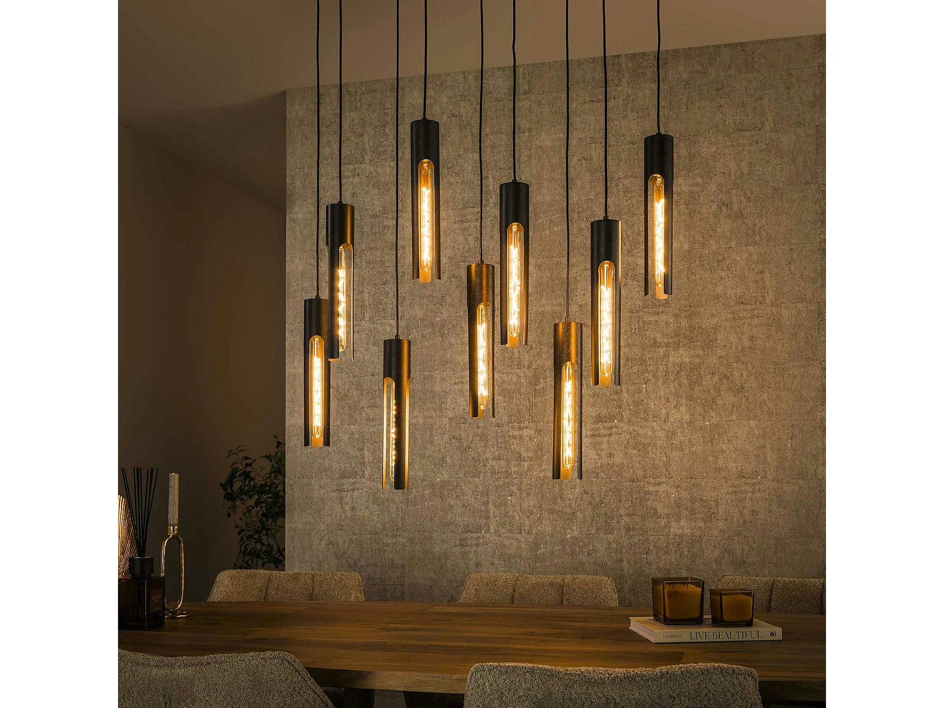 Suspension noire 9 abat-jour forme tube RALF
