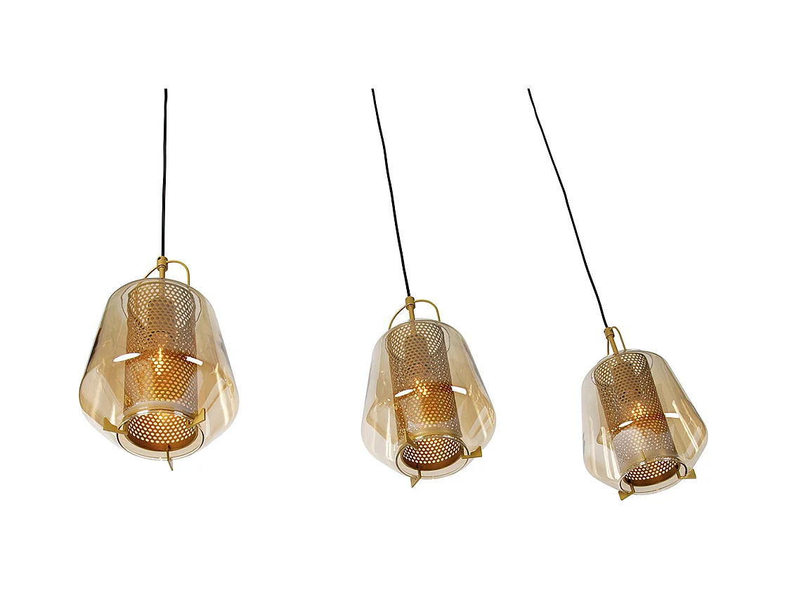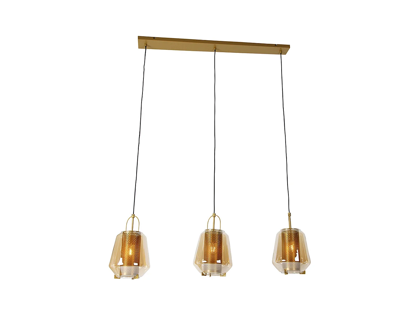 Suspension or avec verre ambré 30 cm oblong 3 lumières - Kevin