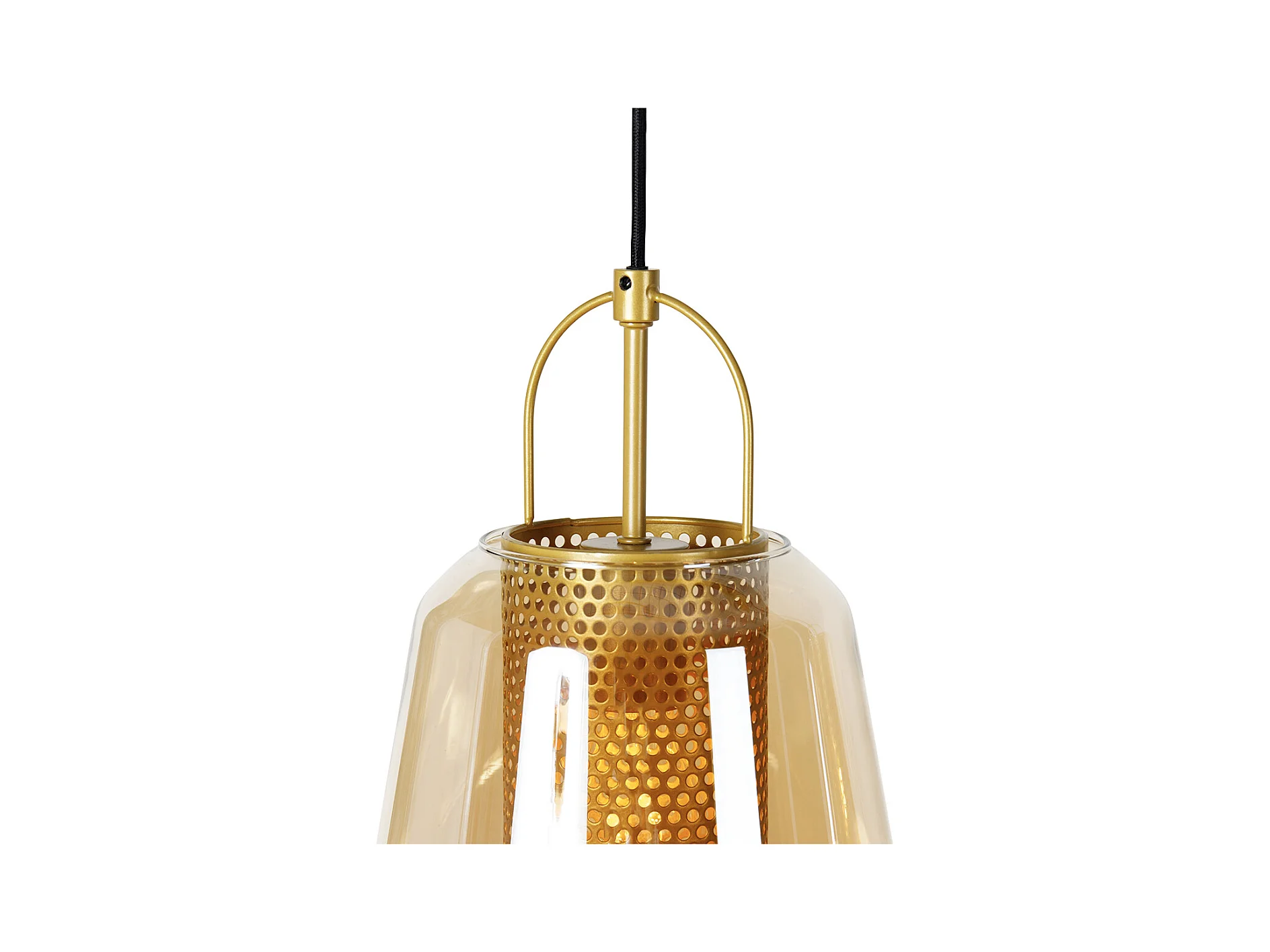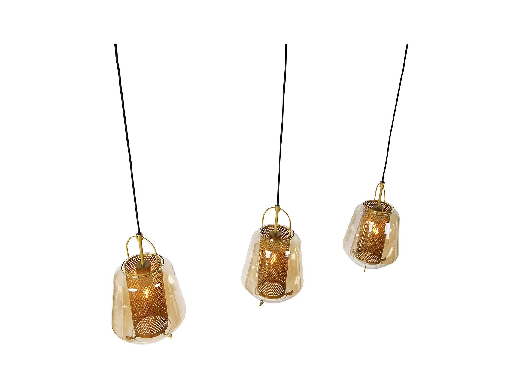 Suspension or avec verre ambré 23 cm oblong 3 lumières - Kevin