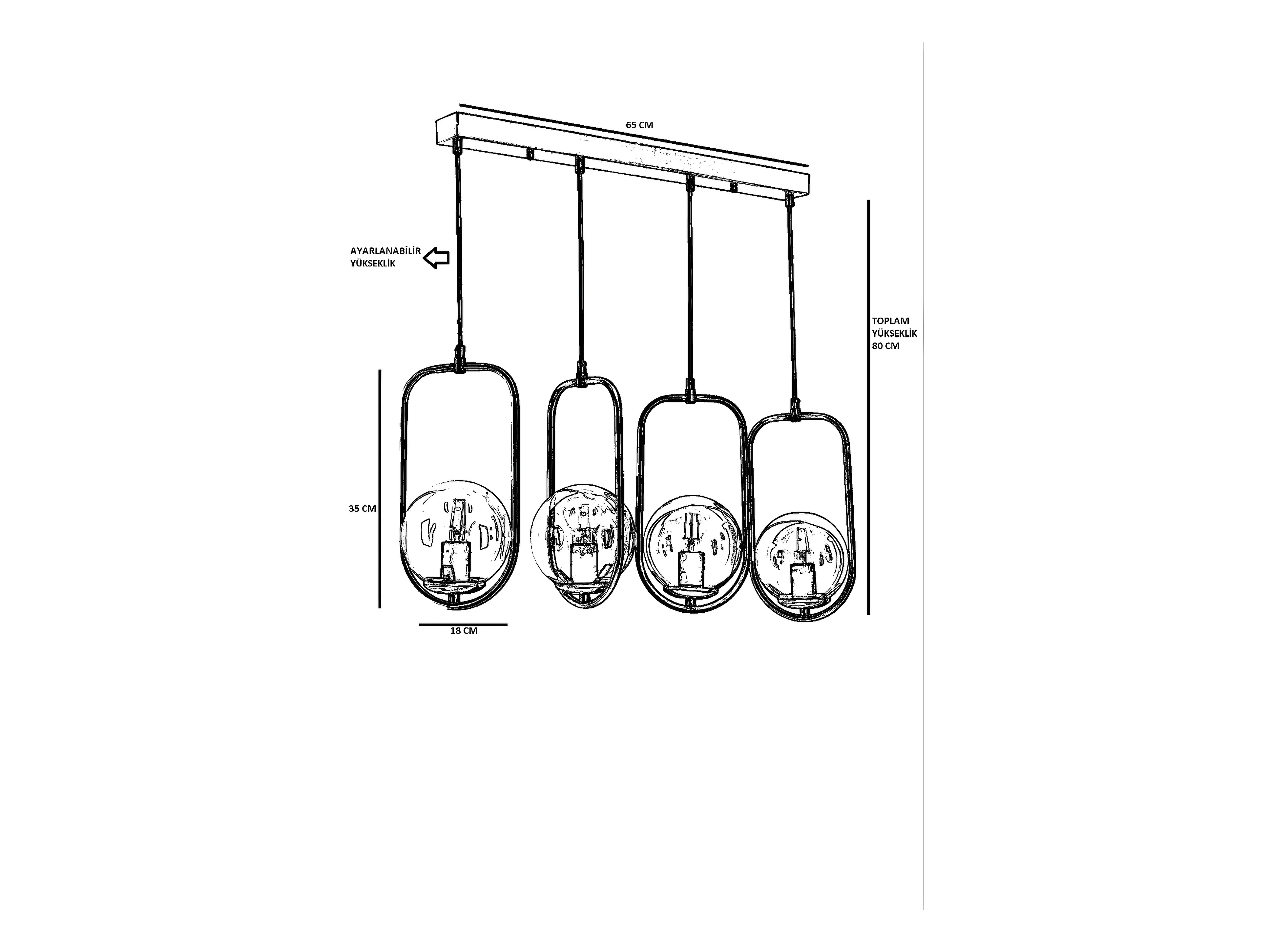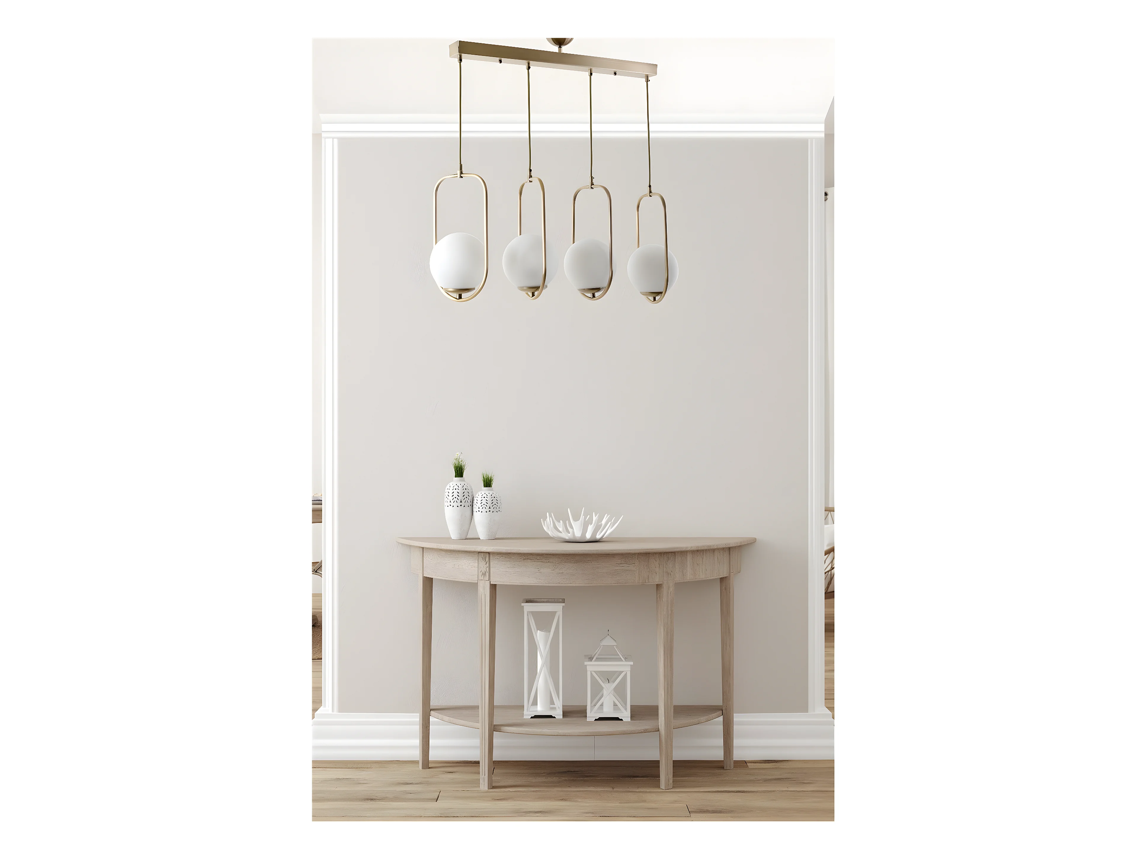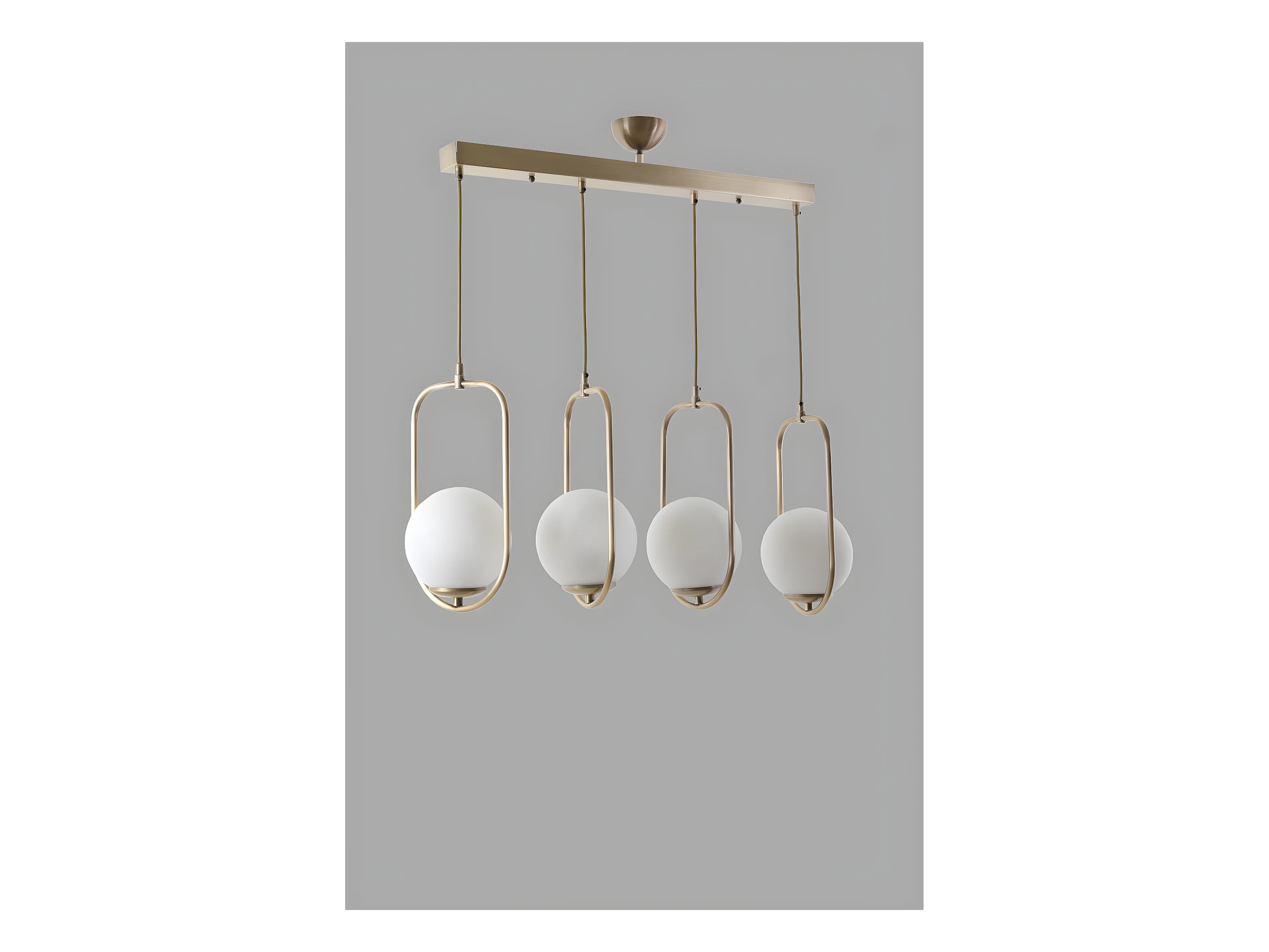 Suspension-plafonnier 4 globes alignés Bulla 65x80cm Verre Blanc et Métal Or rose