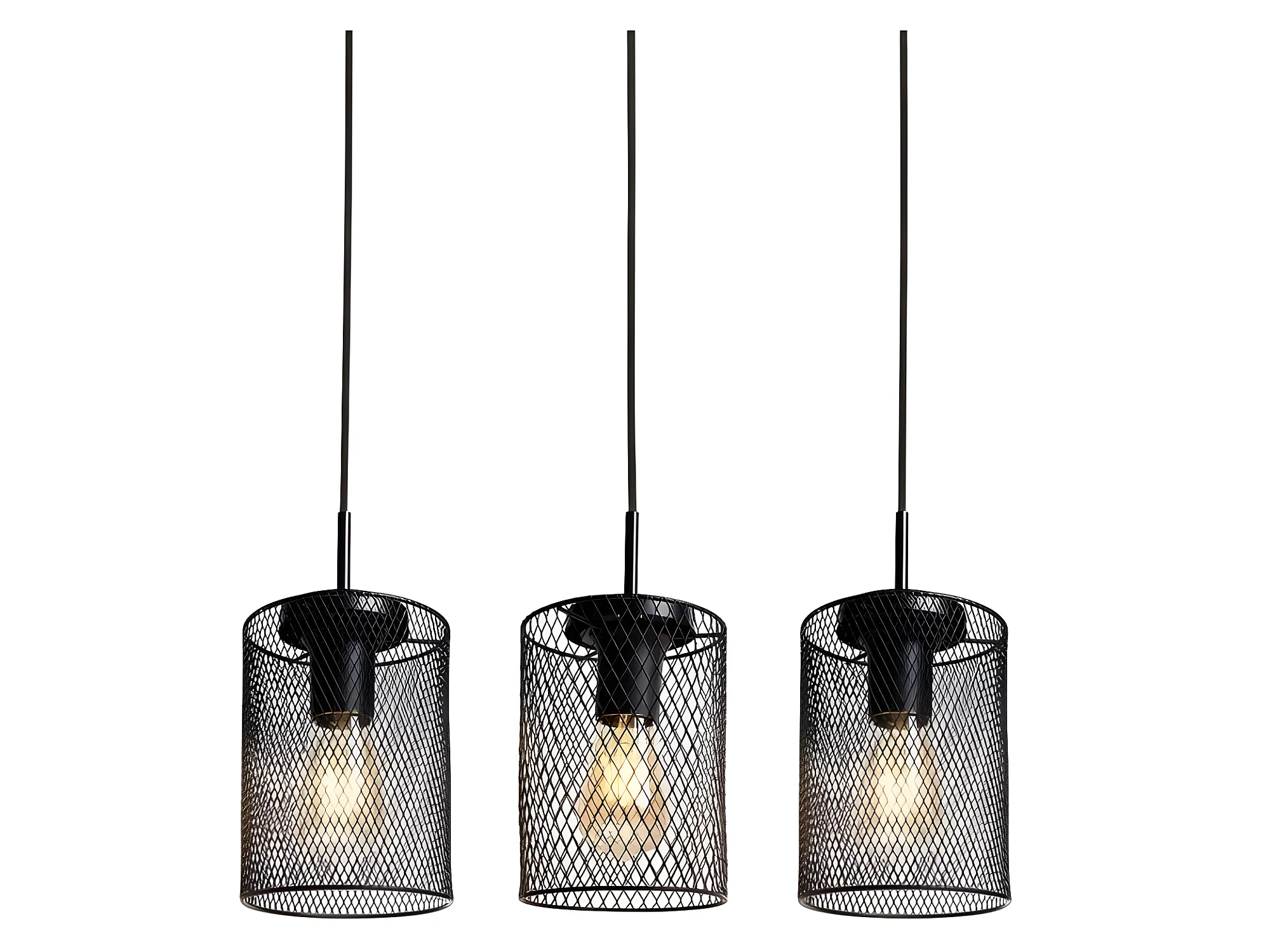 Suspension lustre industriel 3 lumière avec 120 cm câble réglable E27, noir, sans ampoules