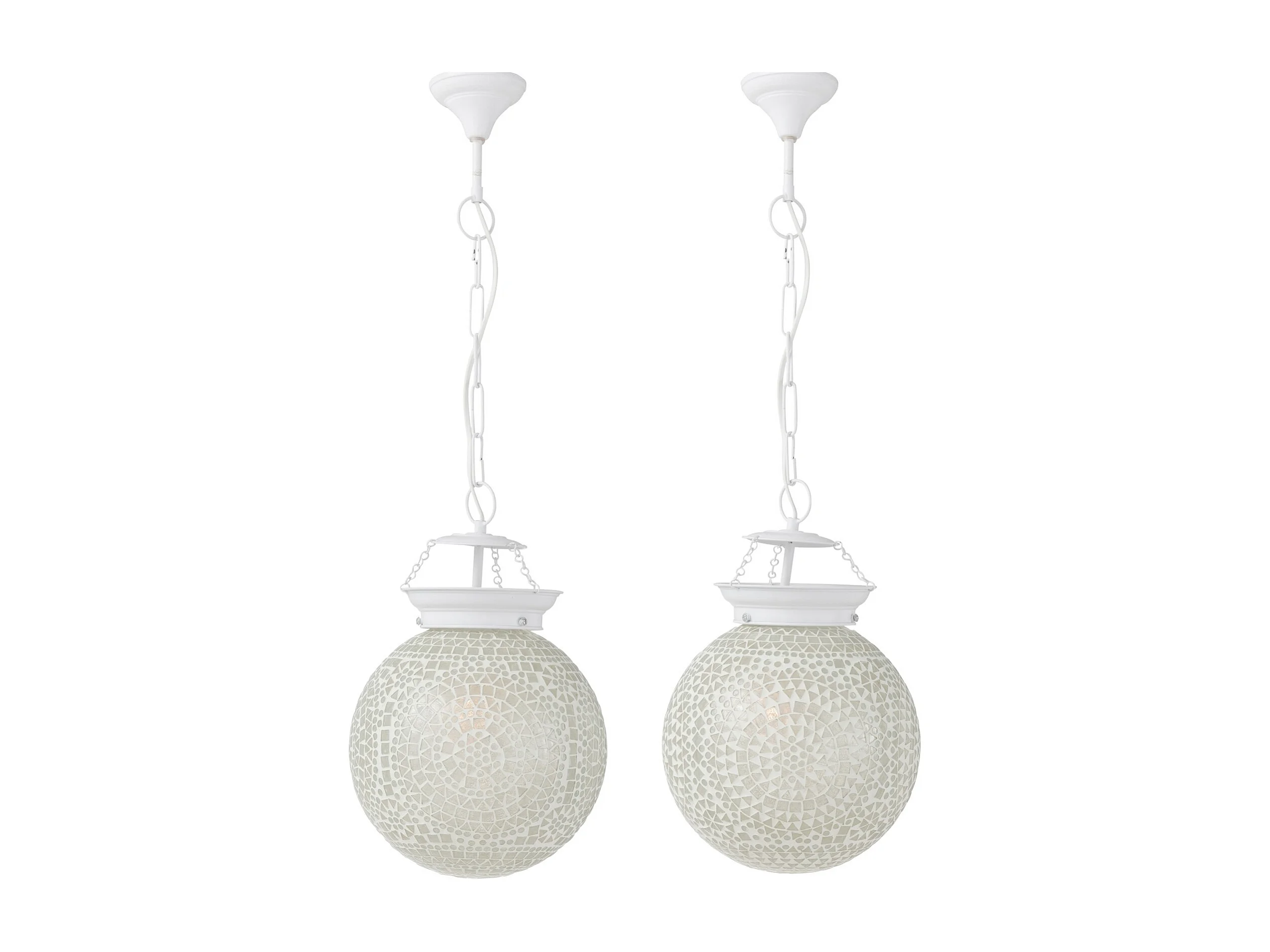 Suspension ronde en verre blanc avec mosaïques Ekio - Lot de 2