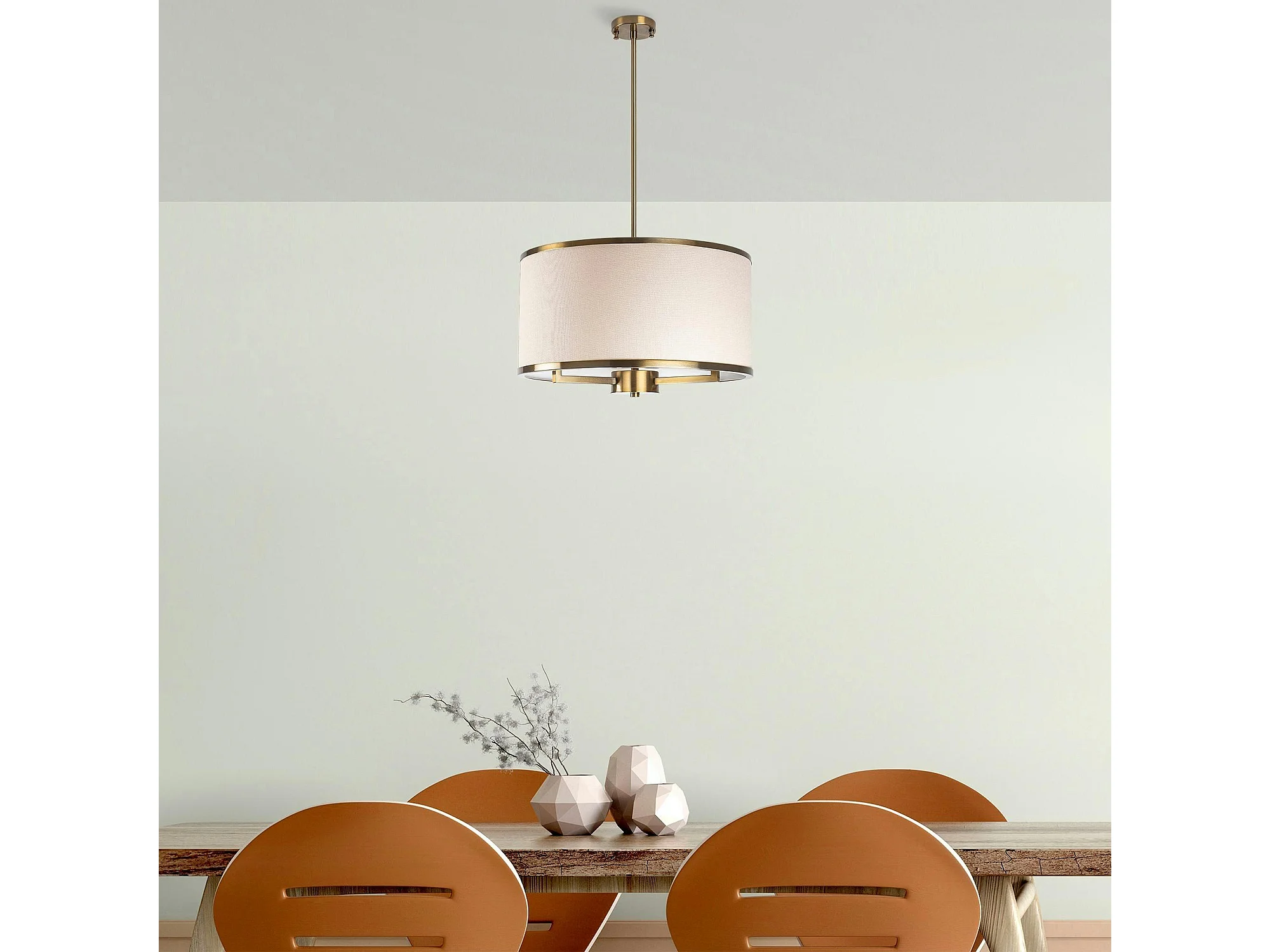 Suspension salon en tissu – abat-jour écru et or ZURICH