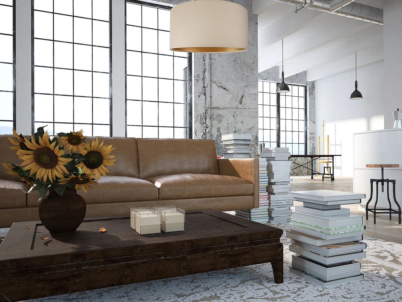 Suspension lustre et plafonnier blanc
