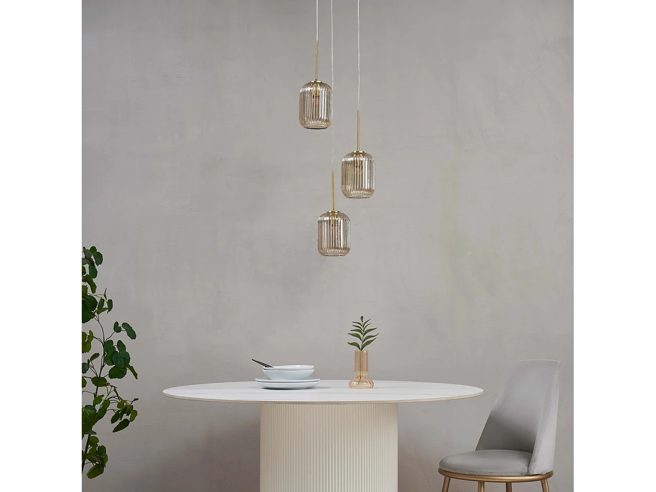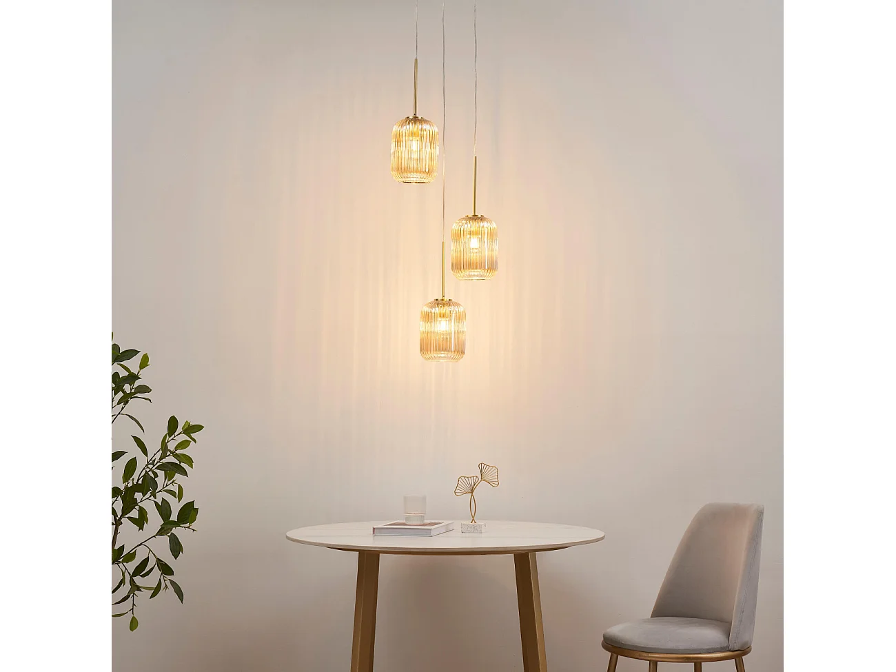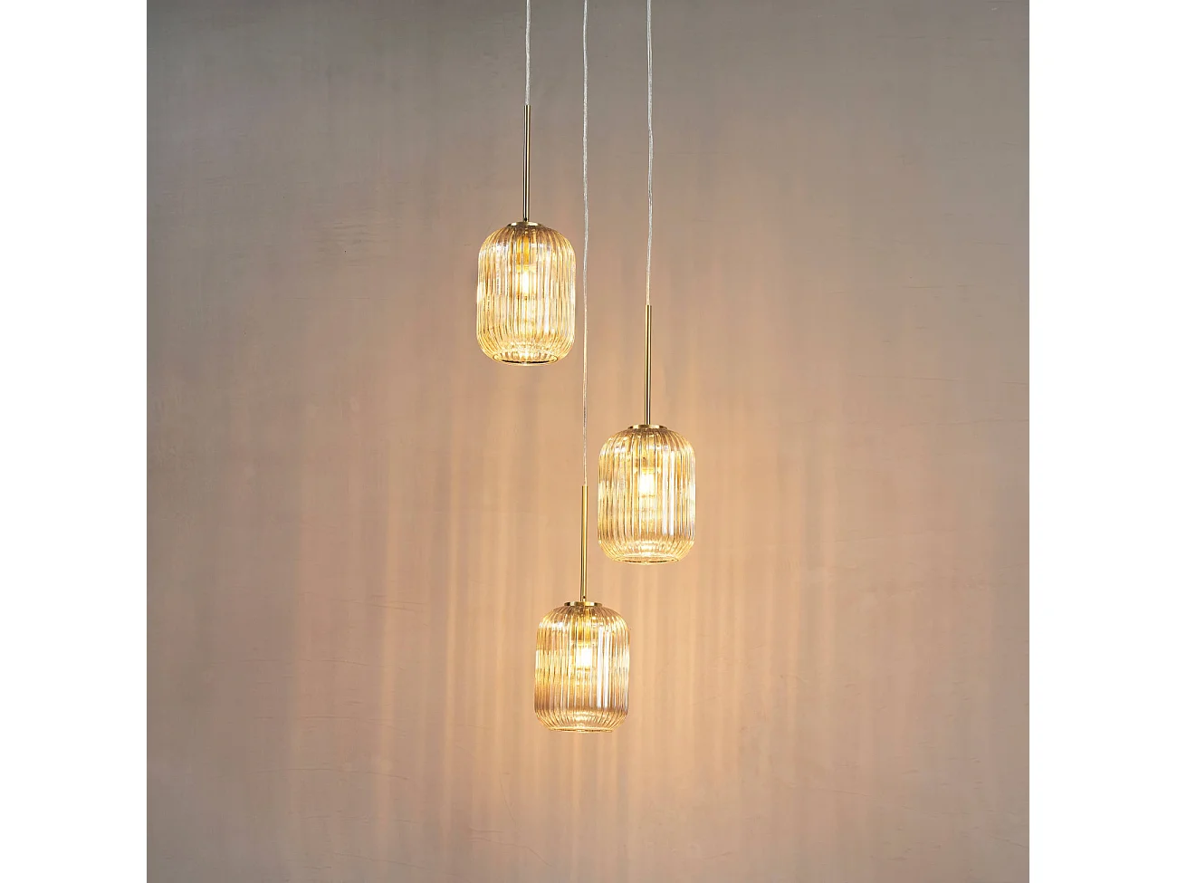 Suspension triple verre cannelé couleur ambrée - Rosalia