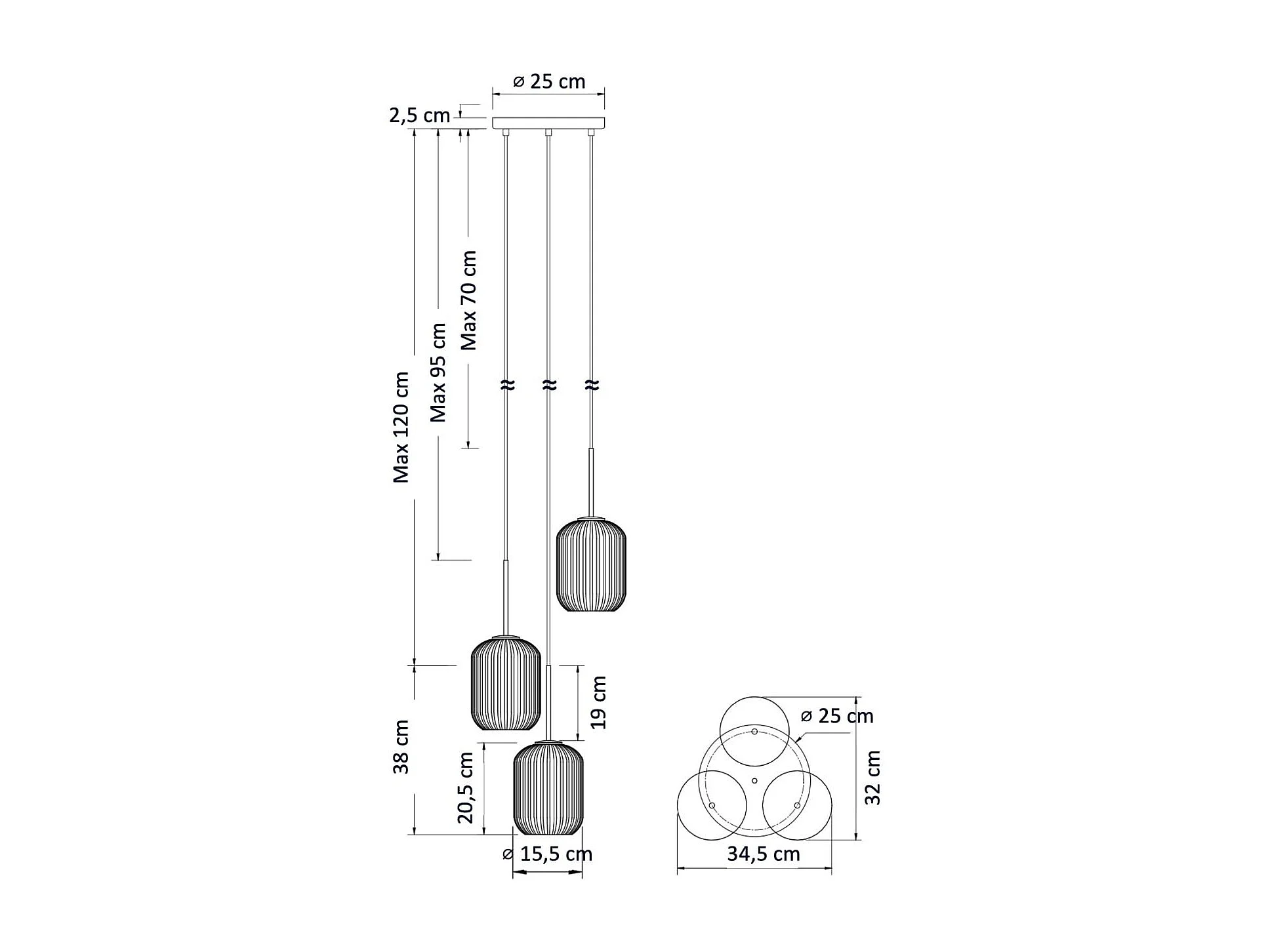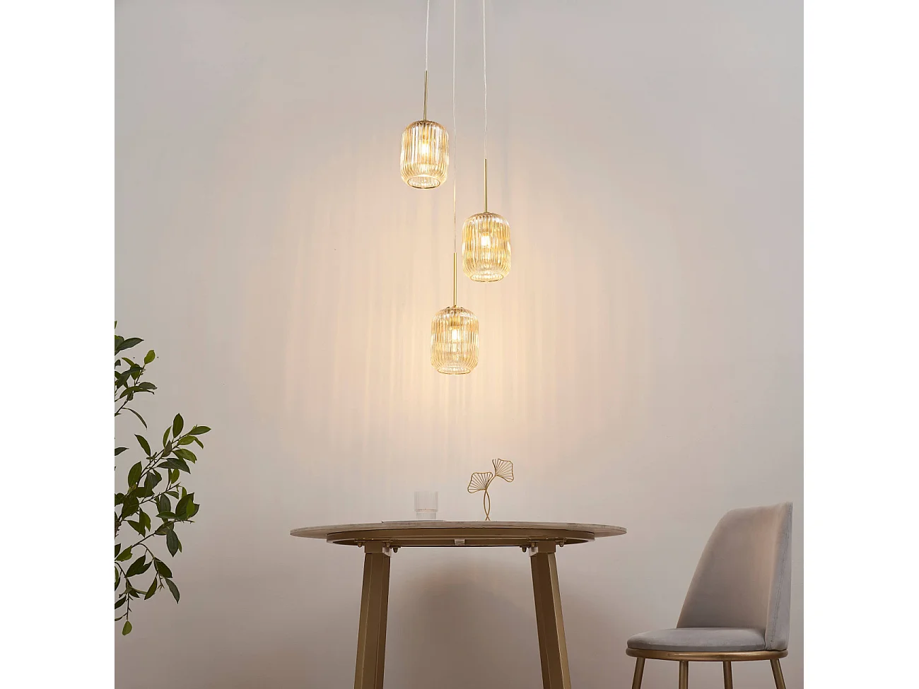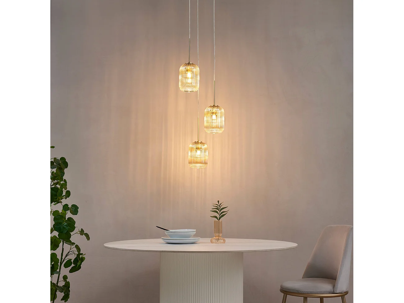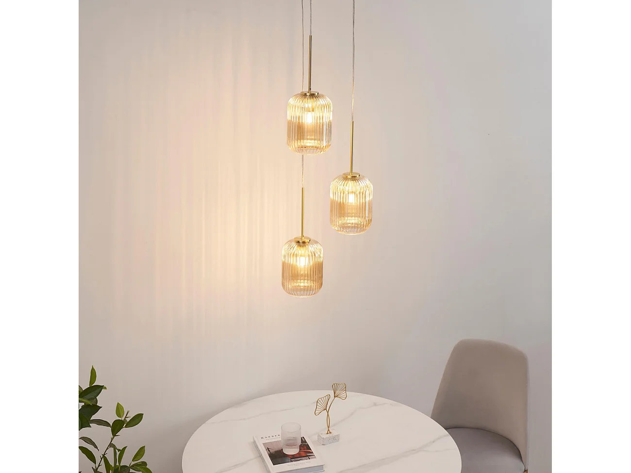 Suspension triple verre cannelé couleur ambrée - Rosalia