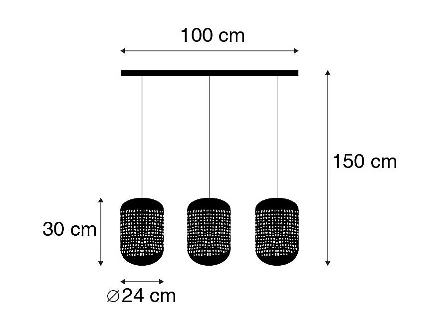 Luminaire Suspension 3 Lampes en métal doré L 80 cm
