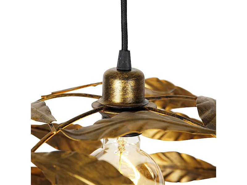 Suspension Marcus d.50 cm, fer blanc, décor or antique, câble réglable, 1 lumière, design classique lumineux
