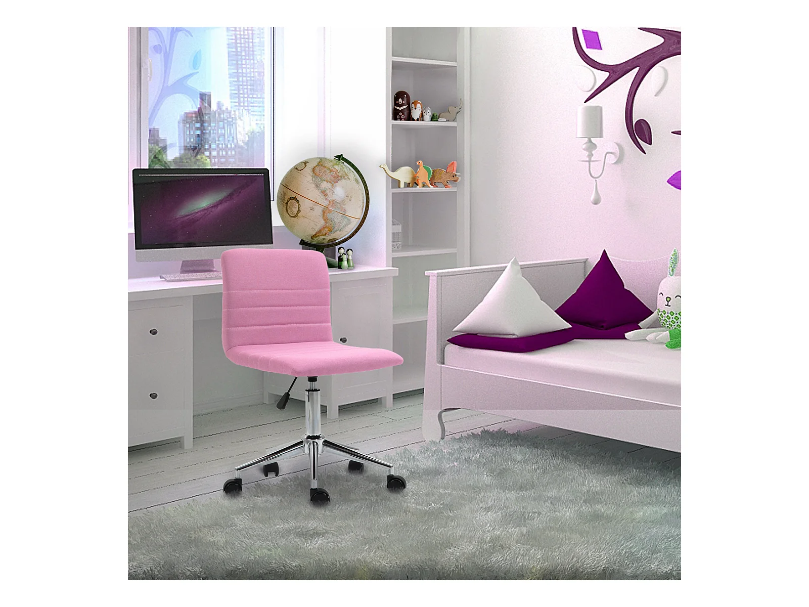 URBAN MEUBLE Chaise de bureau pour enfant rose pastel à roulettes