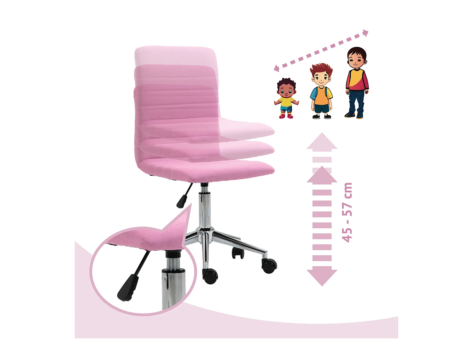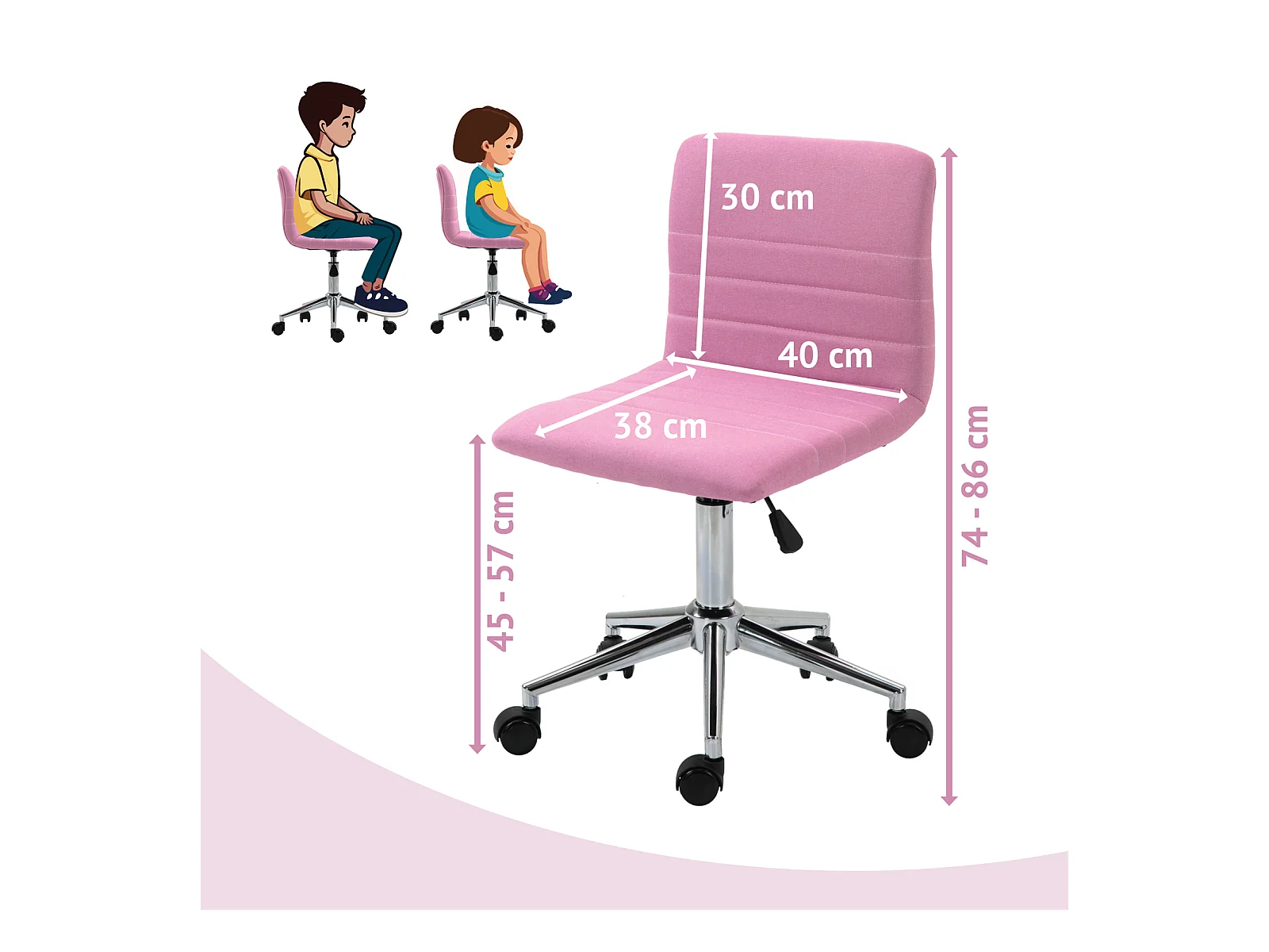 Chaise de bureau enfant MAYLA Rose Réglable en hauteur sans Accoudoirs, Assise Rembourrée Confortable