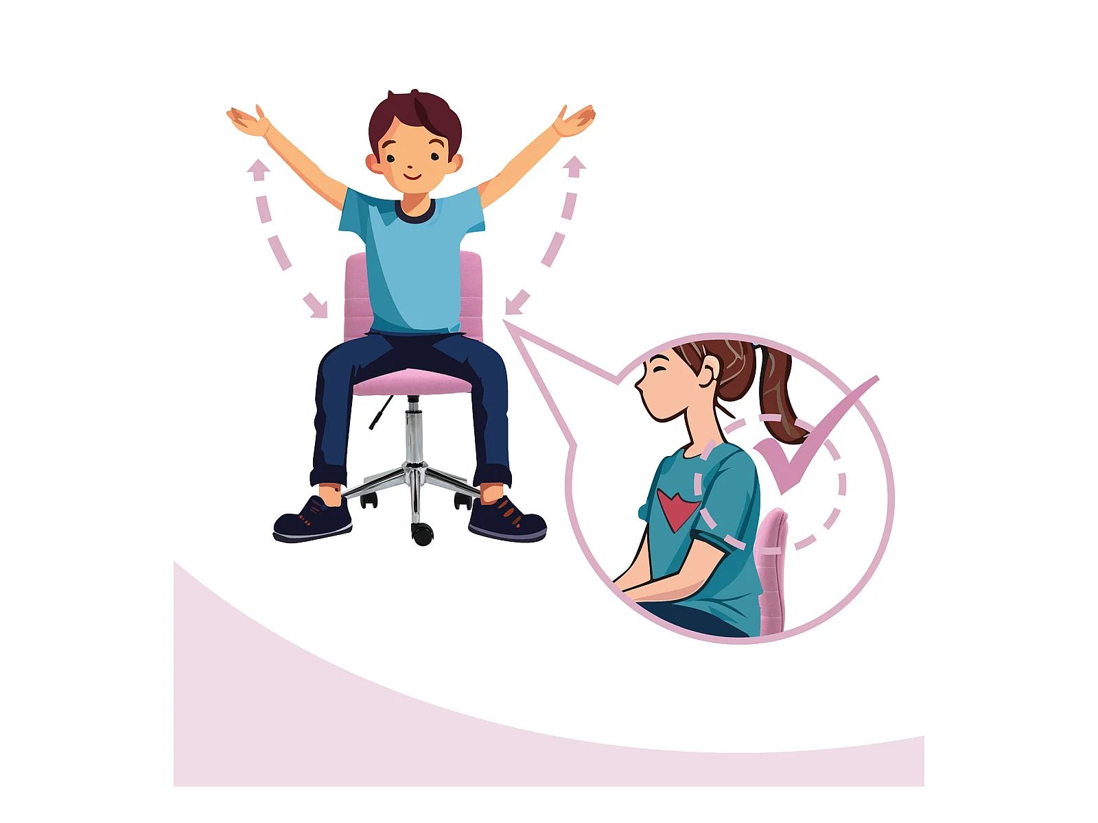 Chaise de bureau enfant AMELIA Rose Réglable en hauteur avec Accoudoirs, Assise Rembourrée Confortable