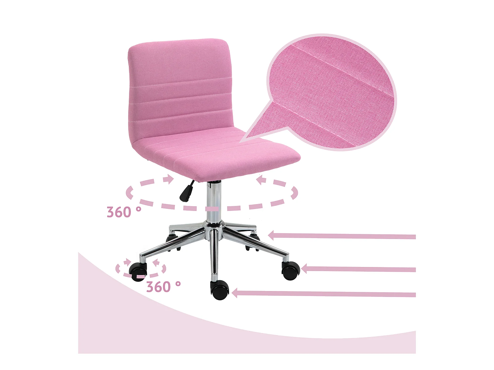 Chaise de bureau ergonomique JOGO rose assise pivotante et réglable en hauteur 99 cm, roulettes adaptées à la moquette