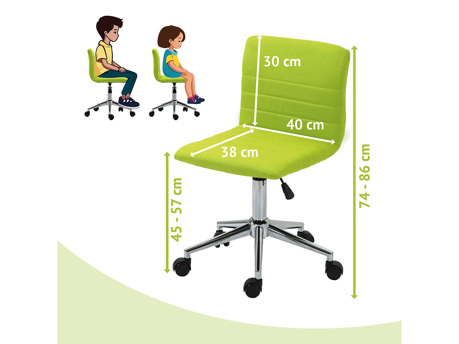 Chaise de bureau enfant MAYLA Vert Réglable en hauteur sans Accoudoirs, Assise Rembourrée Confortable