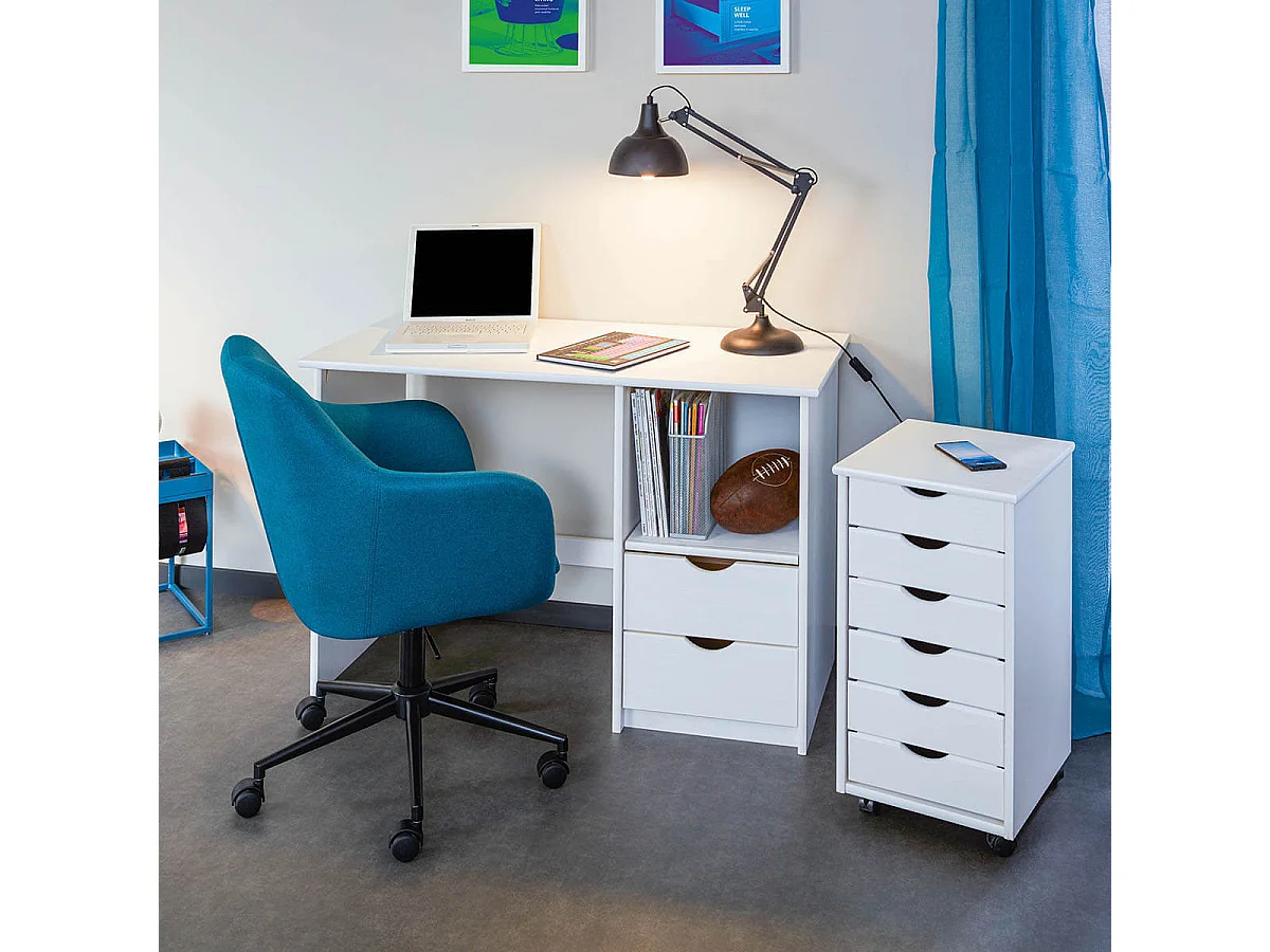 Nete Bureau avec 3 tiroirs, en pieds en métal, blanc, noir.