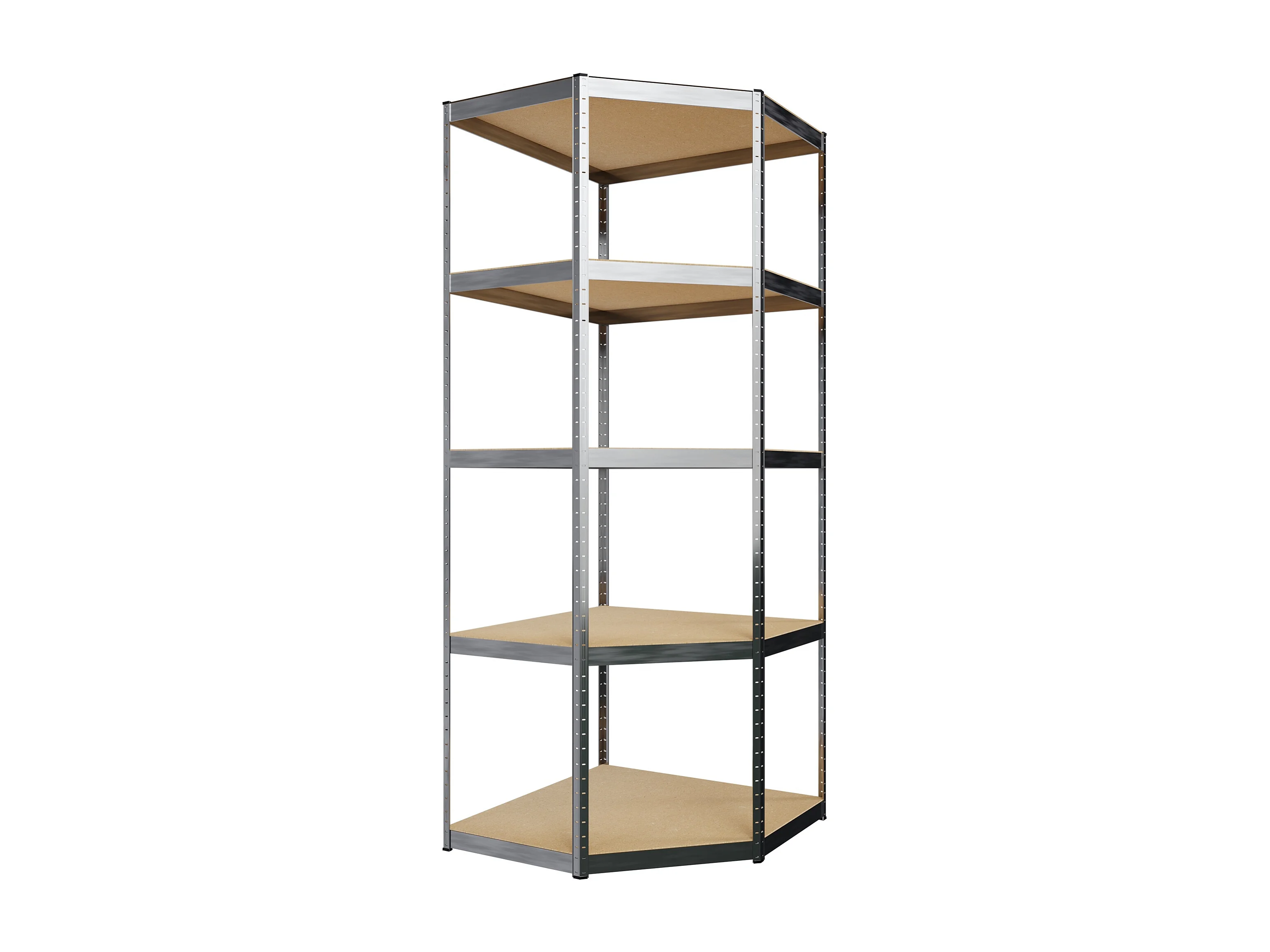 Étagère d'angle 5 niveaux Argenté Acier et bois d'ingénierie OFR66692 BonneVie Meuble
