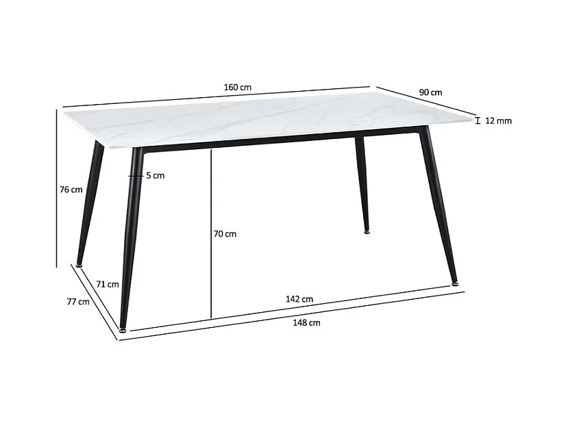 Table 160 cm céramique blanc marbré pieds évasés métal noir - RYDER 2