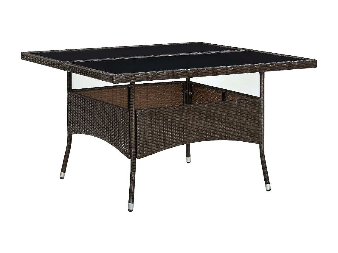 Table à dîner d'extérieur Marron Résine tressée et verre