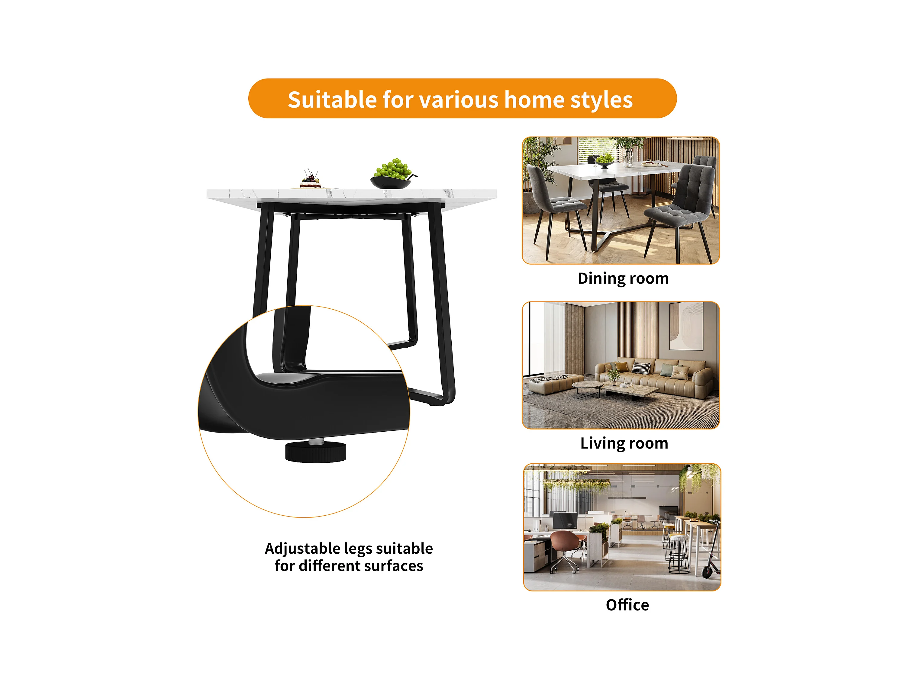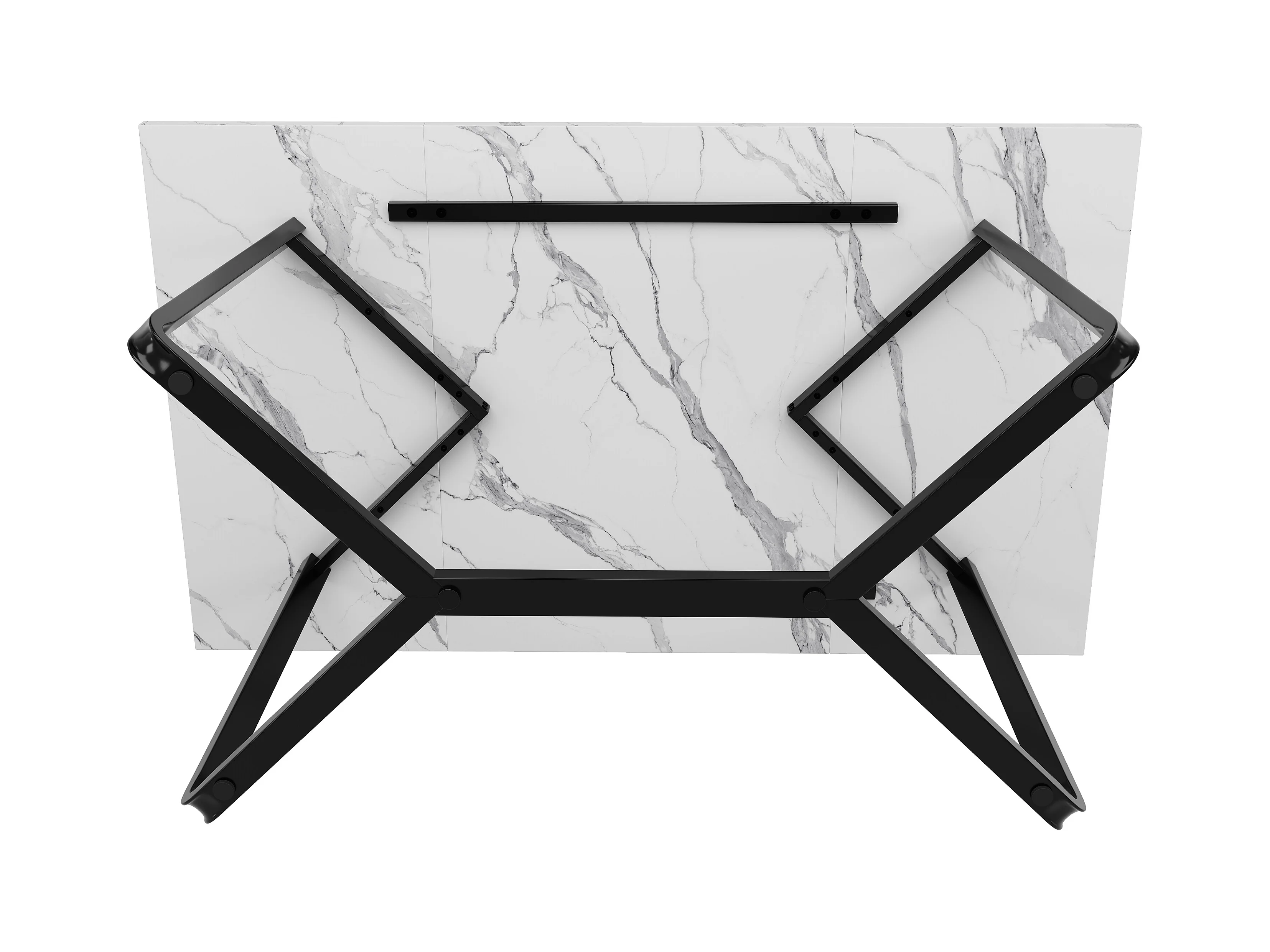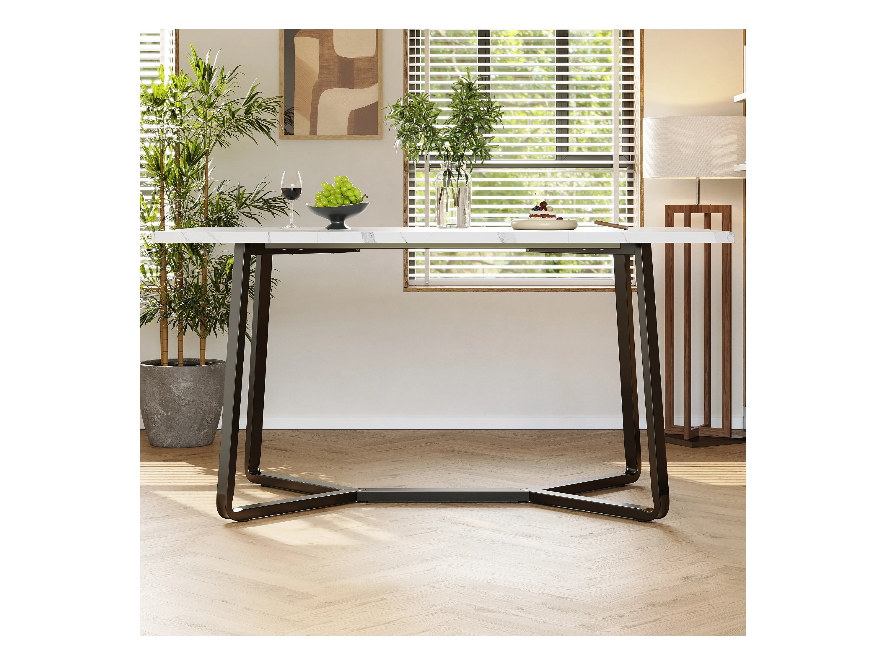 Table à manger 4 à 6 personnes - 138.5 x 75 x 76 cm - plateau en marbré - MDF + Métal - noir + blanc