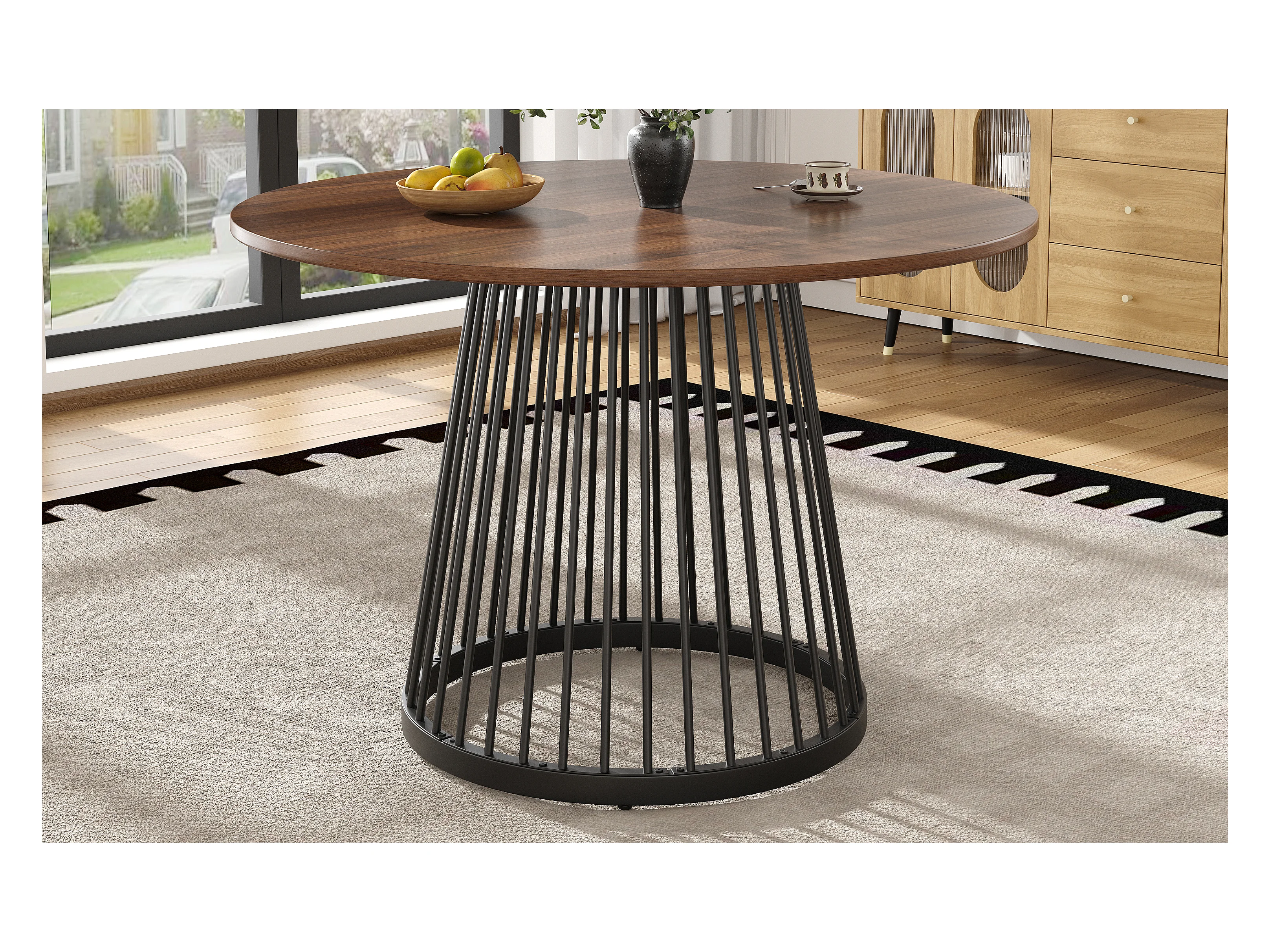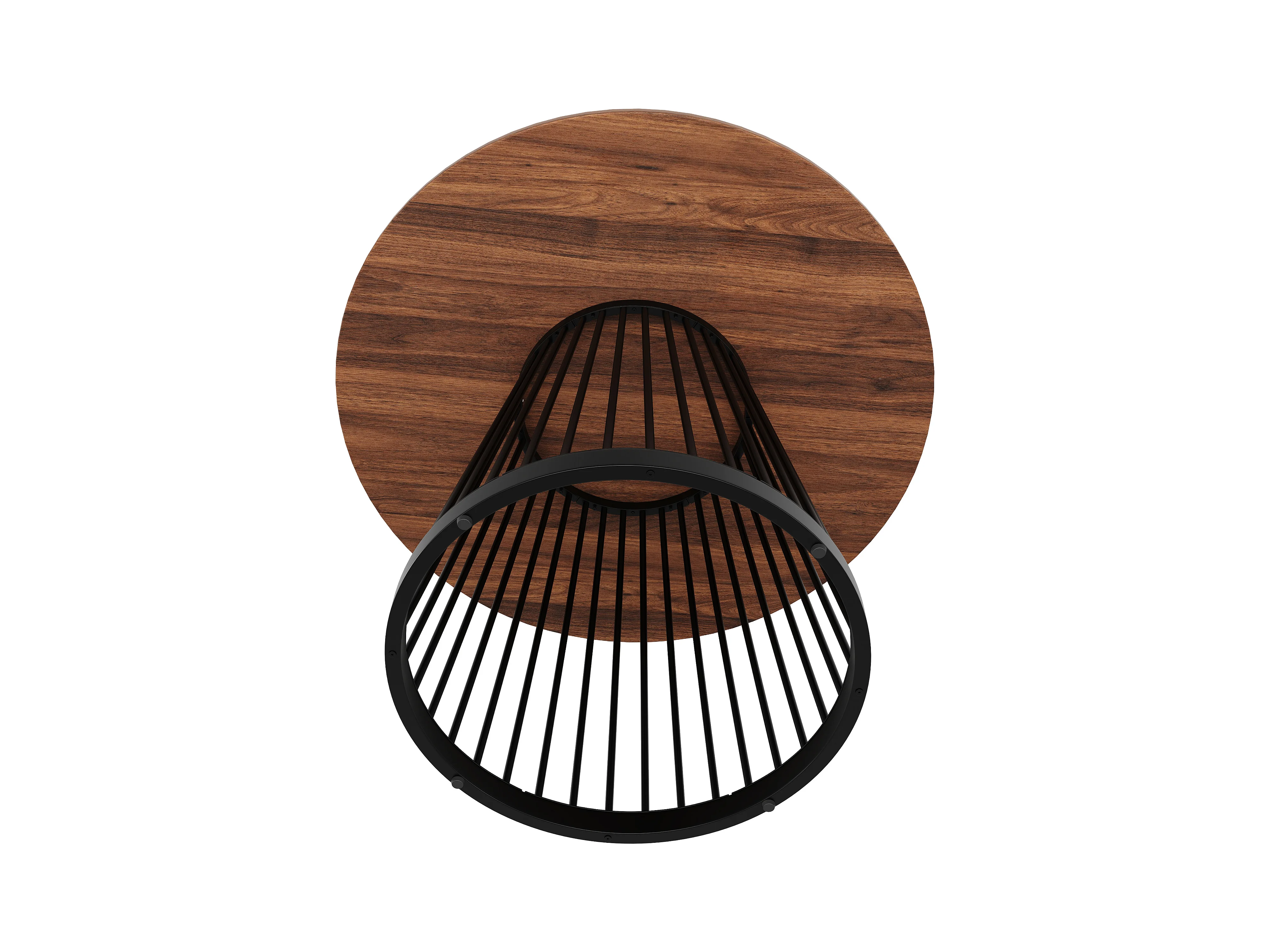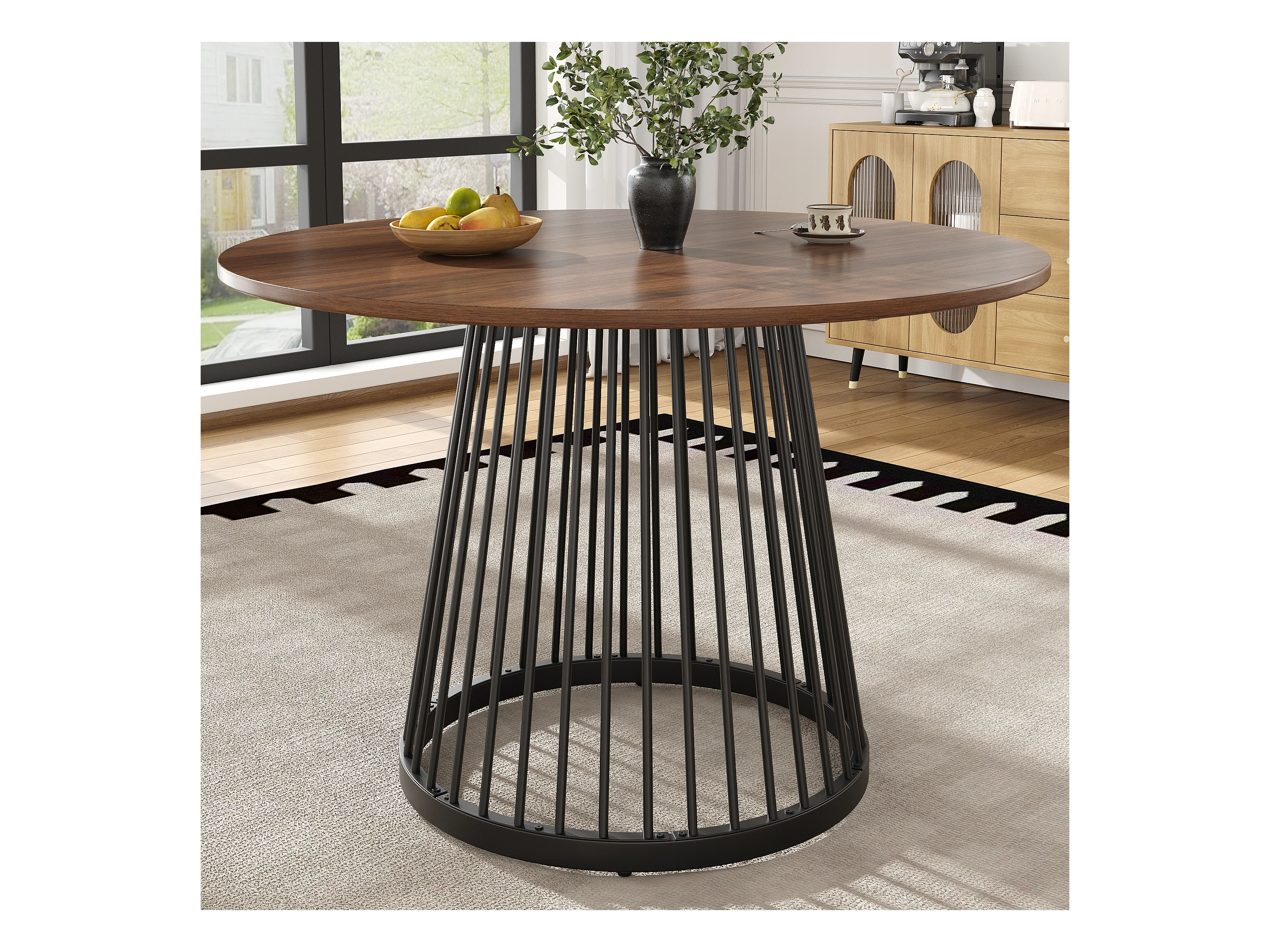 Table à manger ronde - Cadre en métal - Plateau de table en grain de bois - 2 à 4 personnes - MDF - Noir & Marron