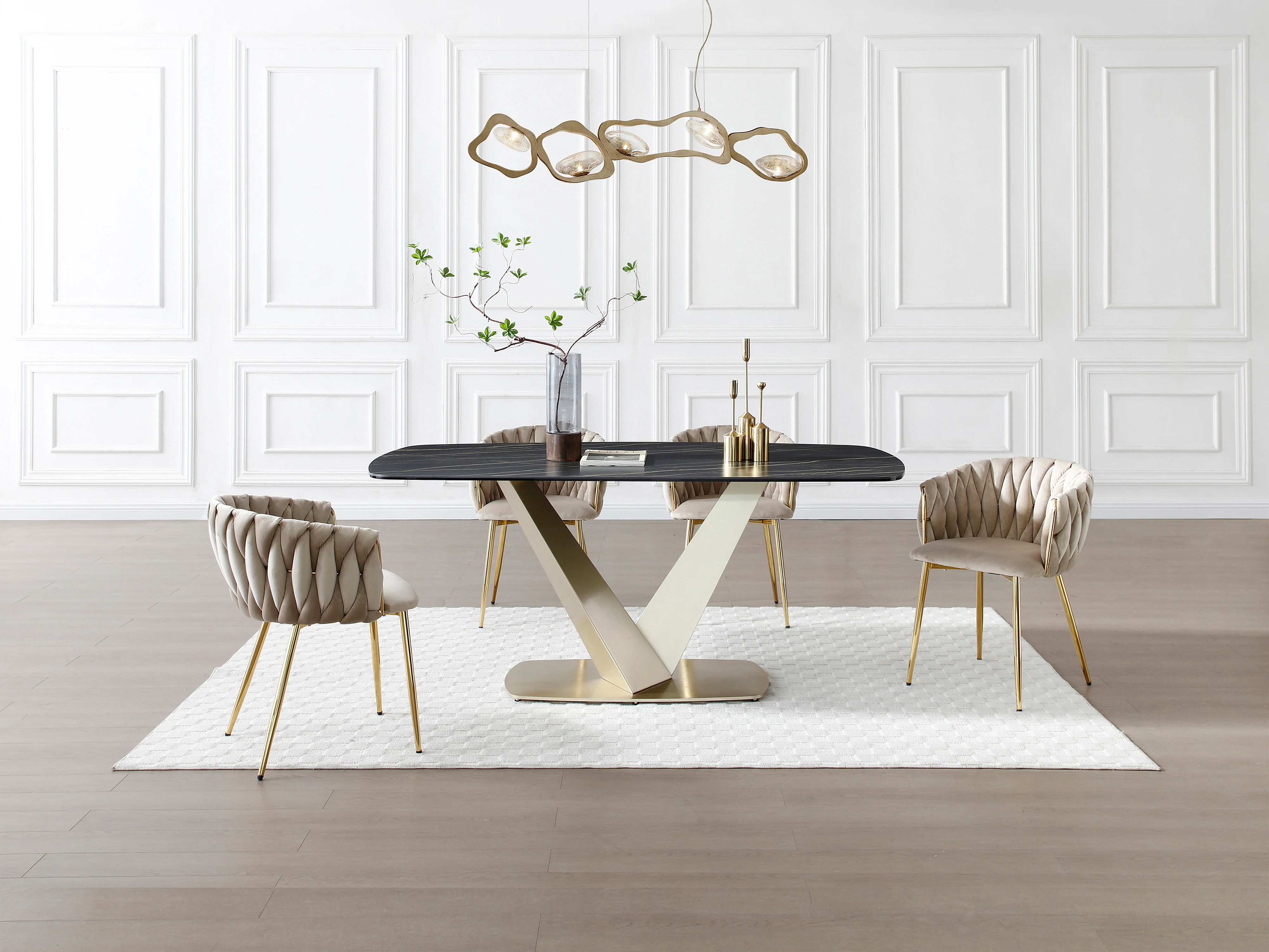 Table à manger 6 personnes en céramique, verre trempé et métal doré - Effet marbre noir - PORELIMA de Maison Céphy
