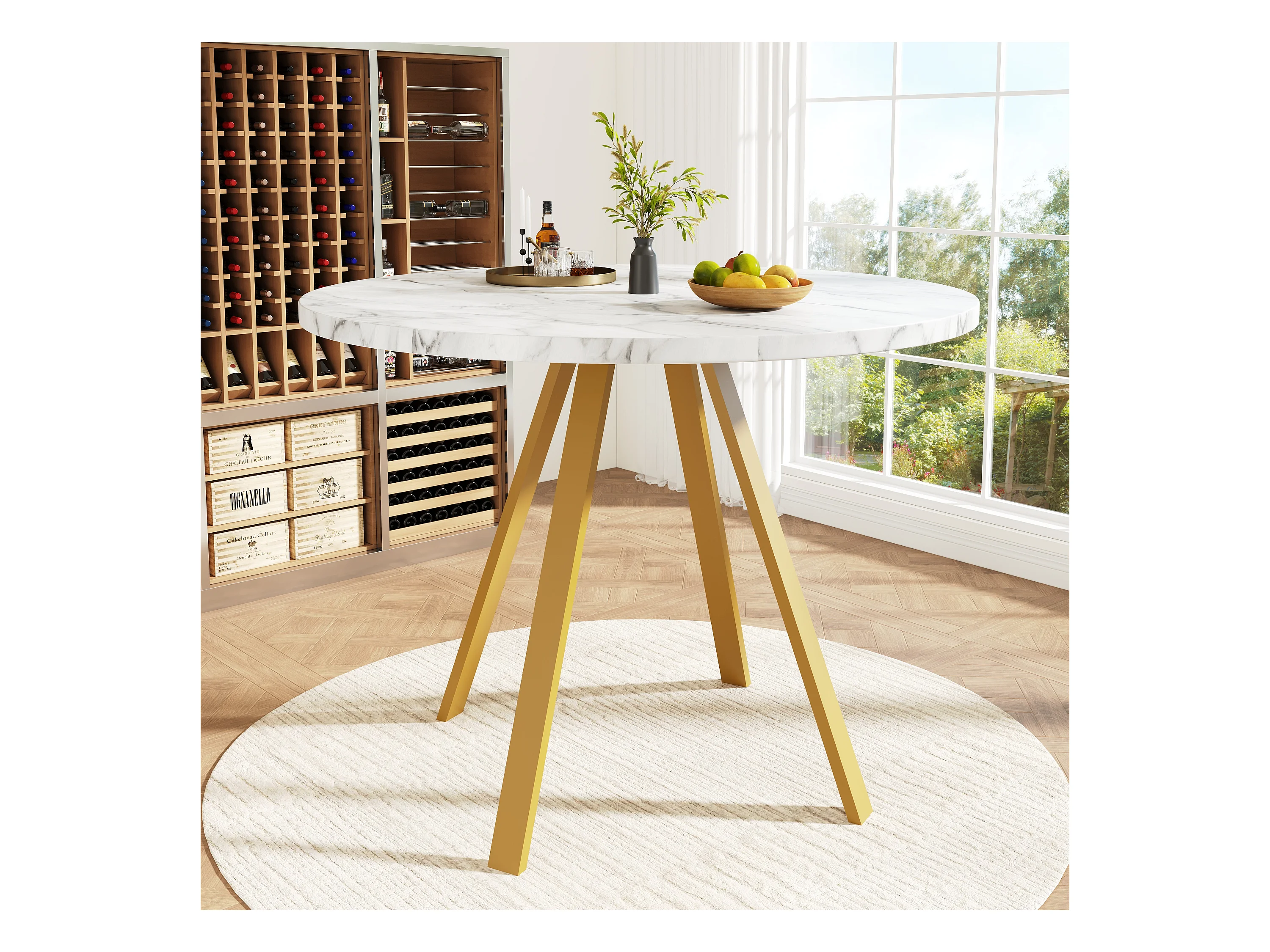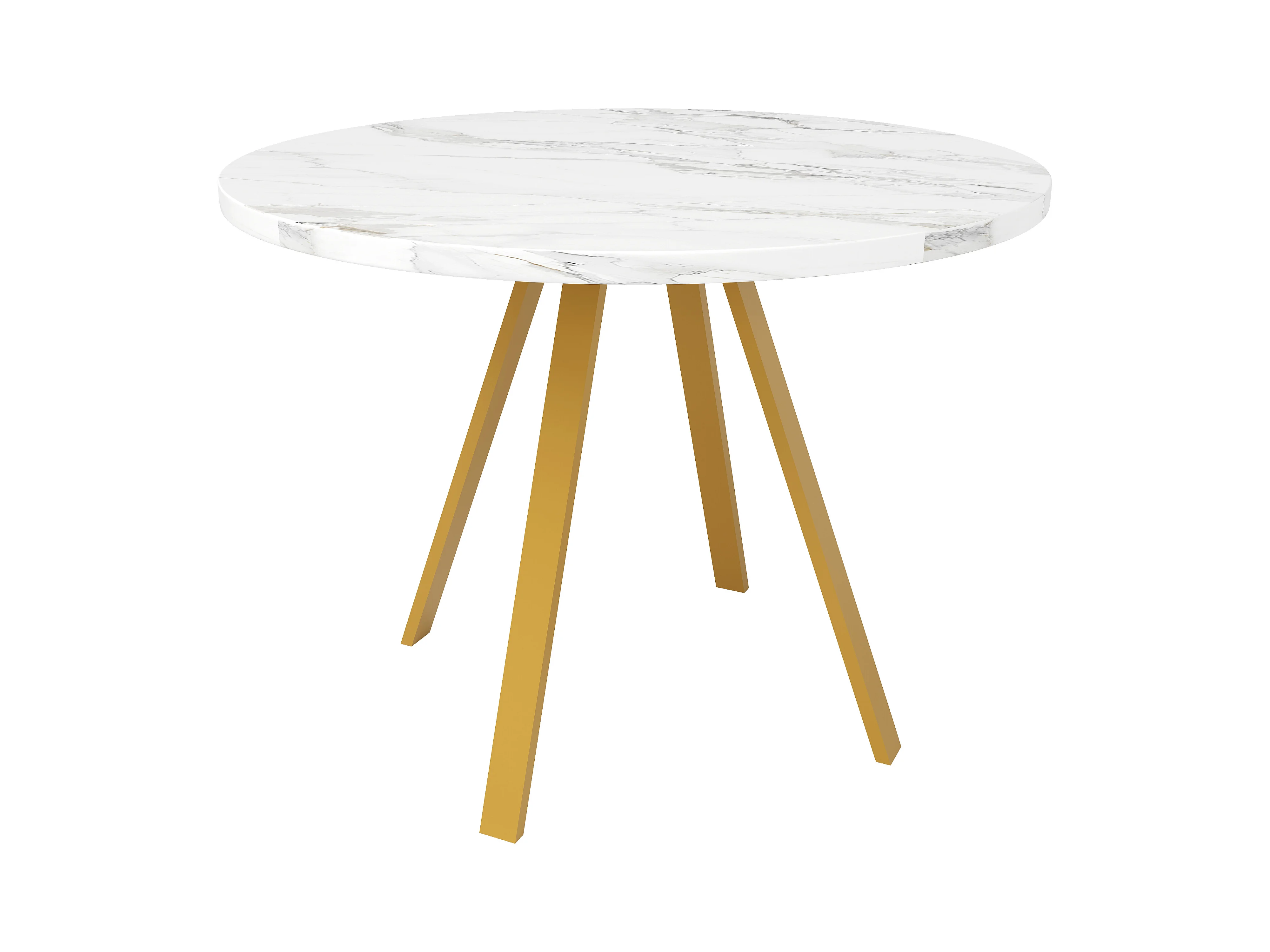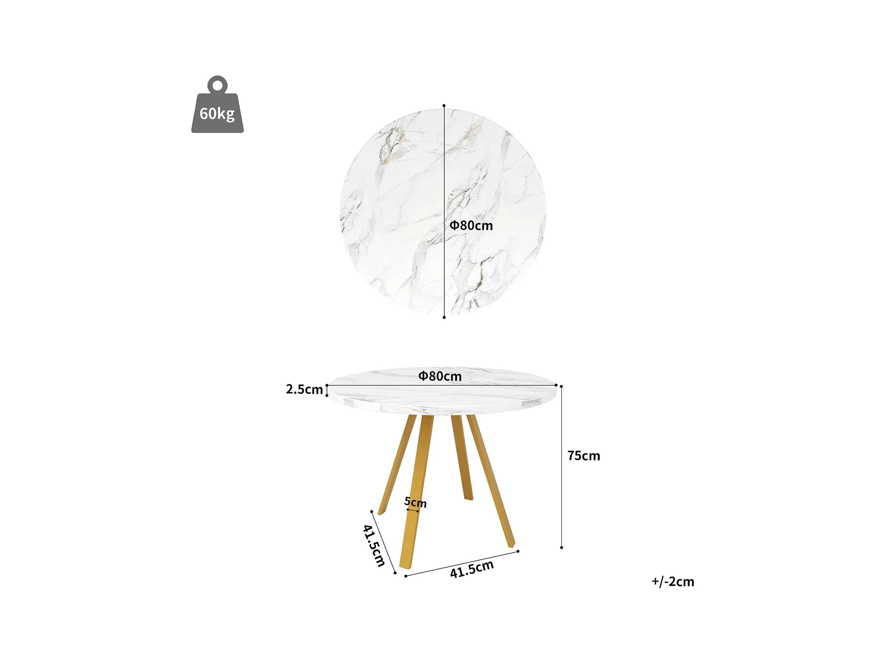 Table à manger - 80 x 80 x 75 cm - table ronde pour 4 personnes - pieds en métal doréss - MDF + Métal - blanc