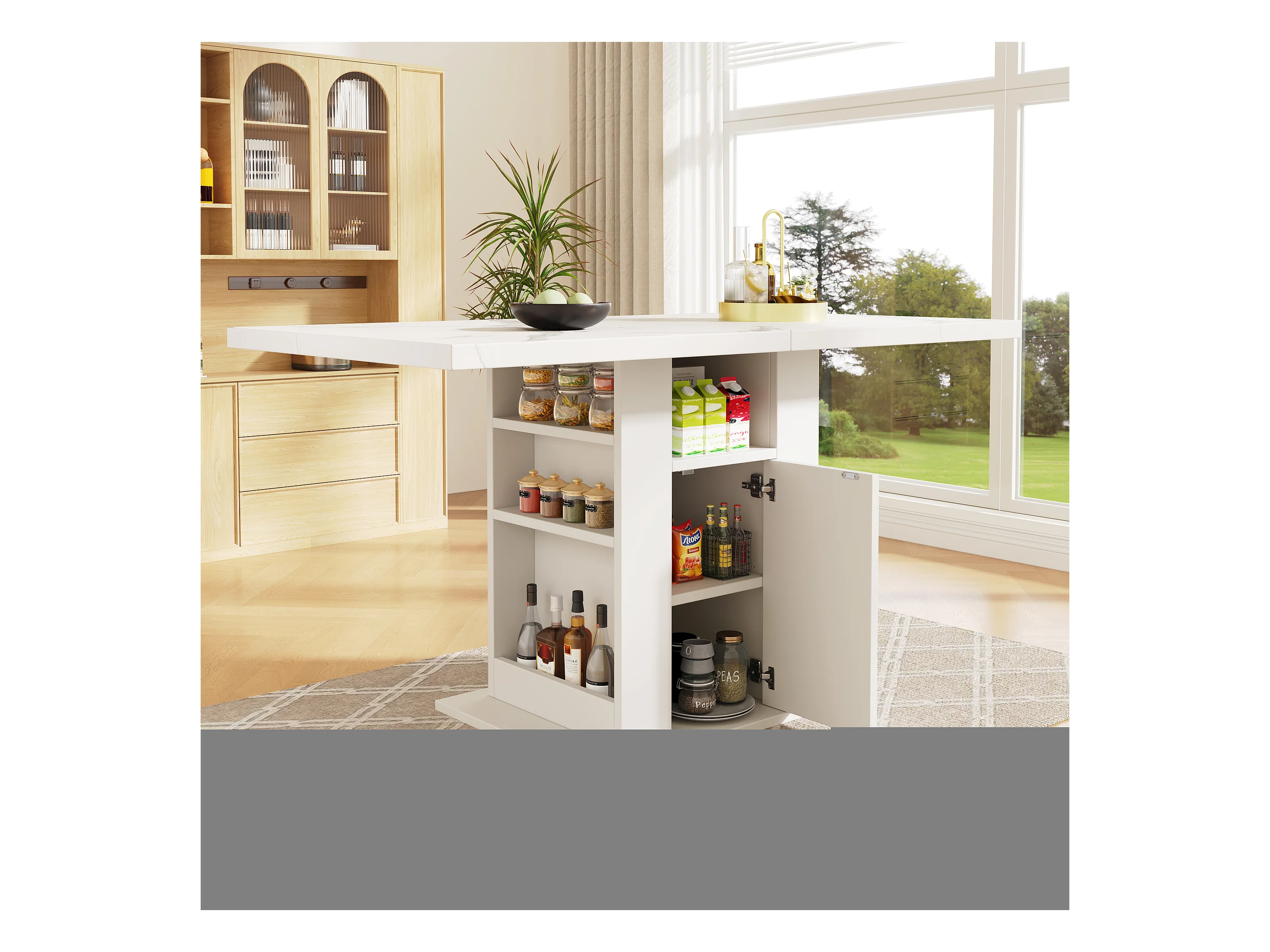 Table à manger avec porte - 140 x 75 x 75 cm - à trois niveaux avec rangement - plateau en marbre - MDF - blanc