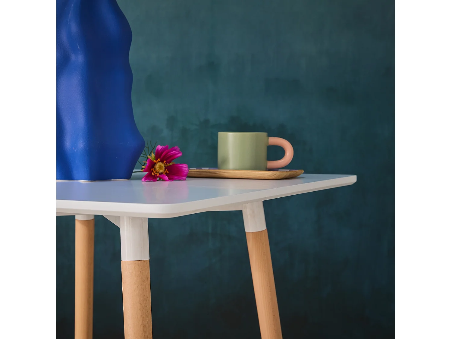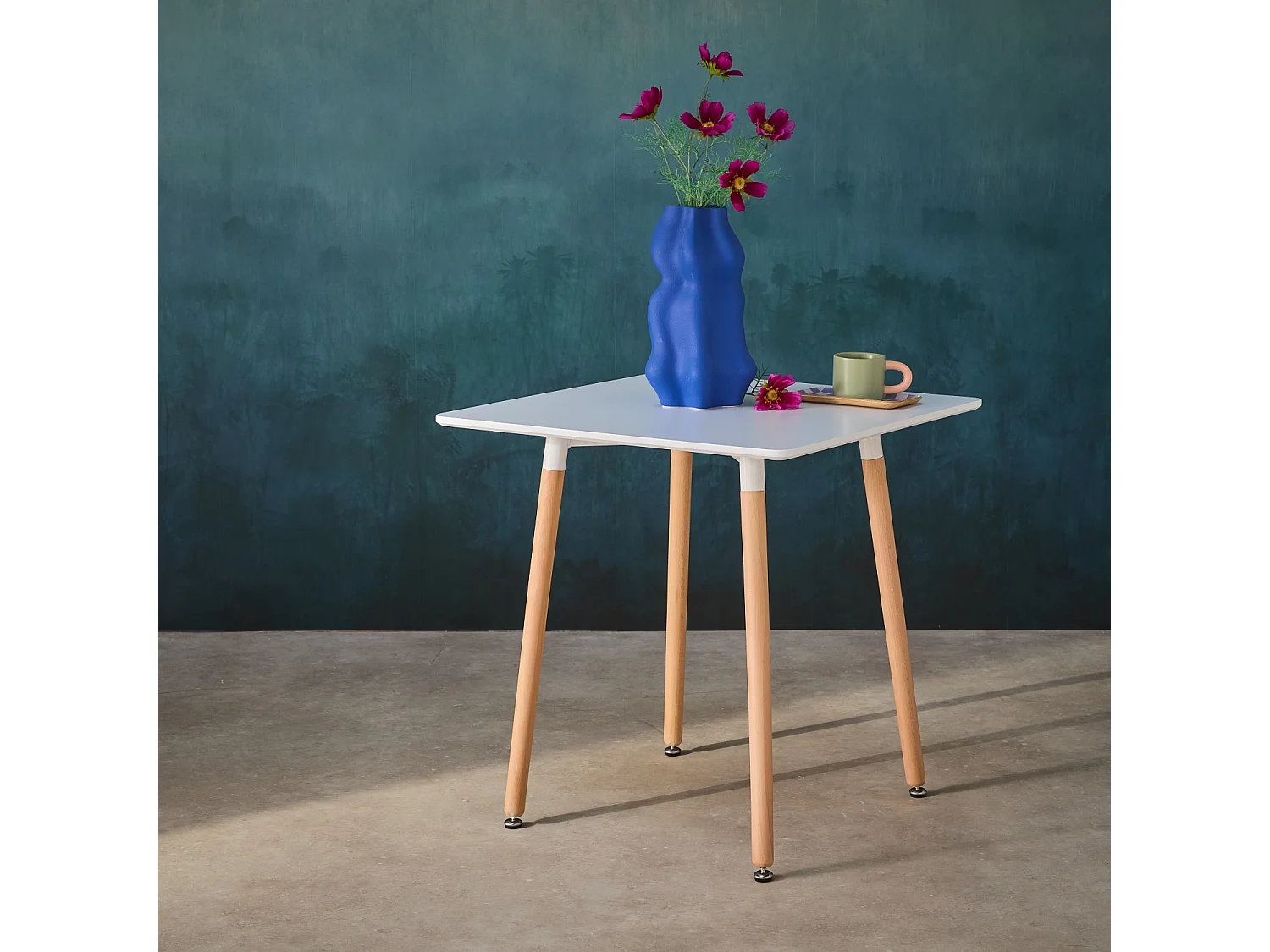 Table à manger blanche carrée MDF et bois de hêtre - Hedvig