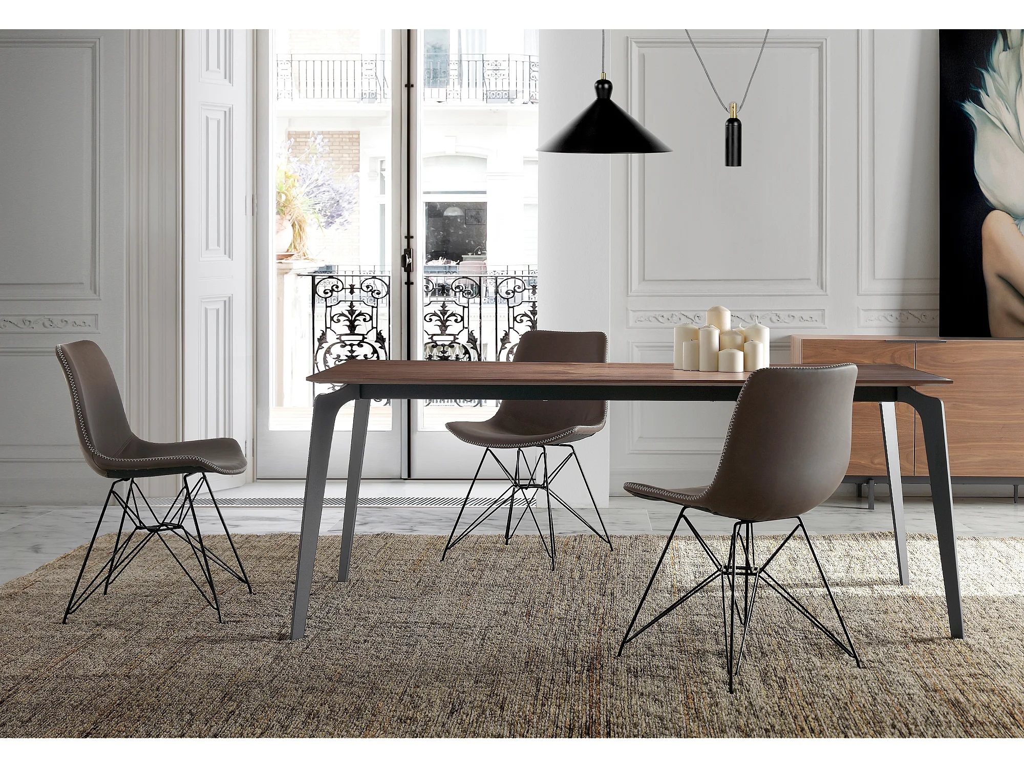 Table à manger bois de noyer et pieds métal noir Zeuka 180cm