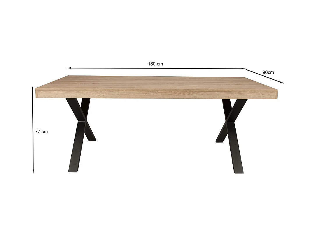Table à manger CADIX, 8 personnes, 180 x 90 cm / Décor Chêne blanchi
