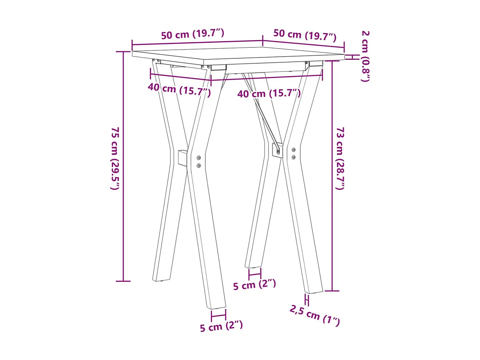 Table à manger cadre en Y 50x50x75 cm bois de pin massif fonte