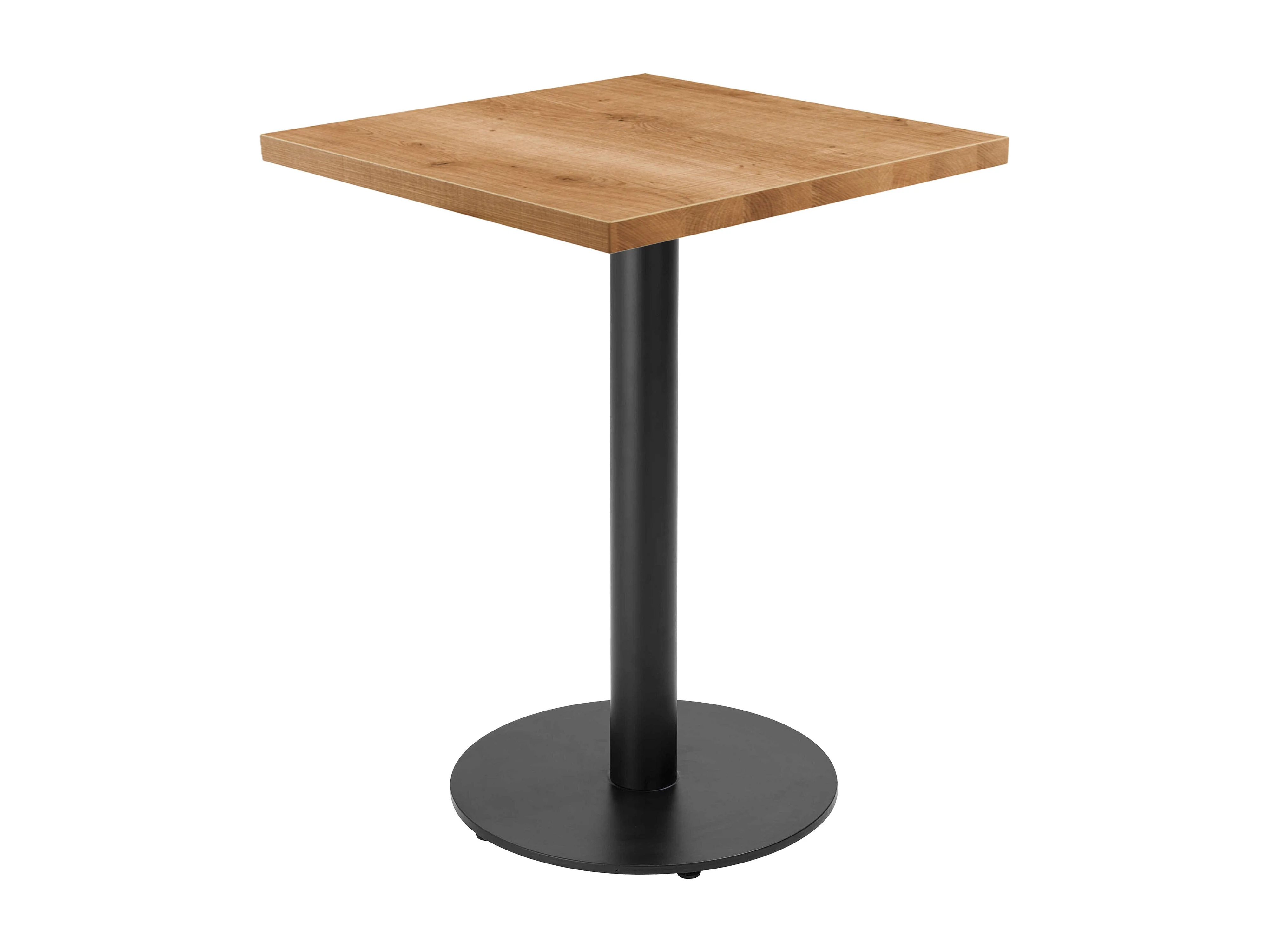 Table haute carrée 60 cm pied noir et revêtement bois clair
