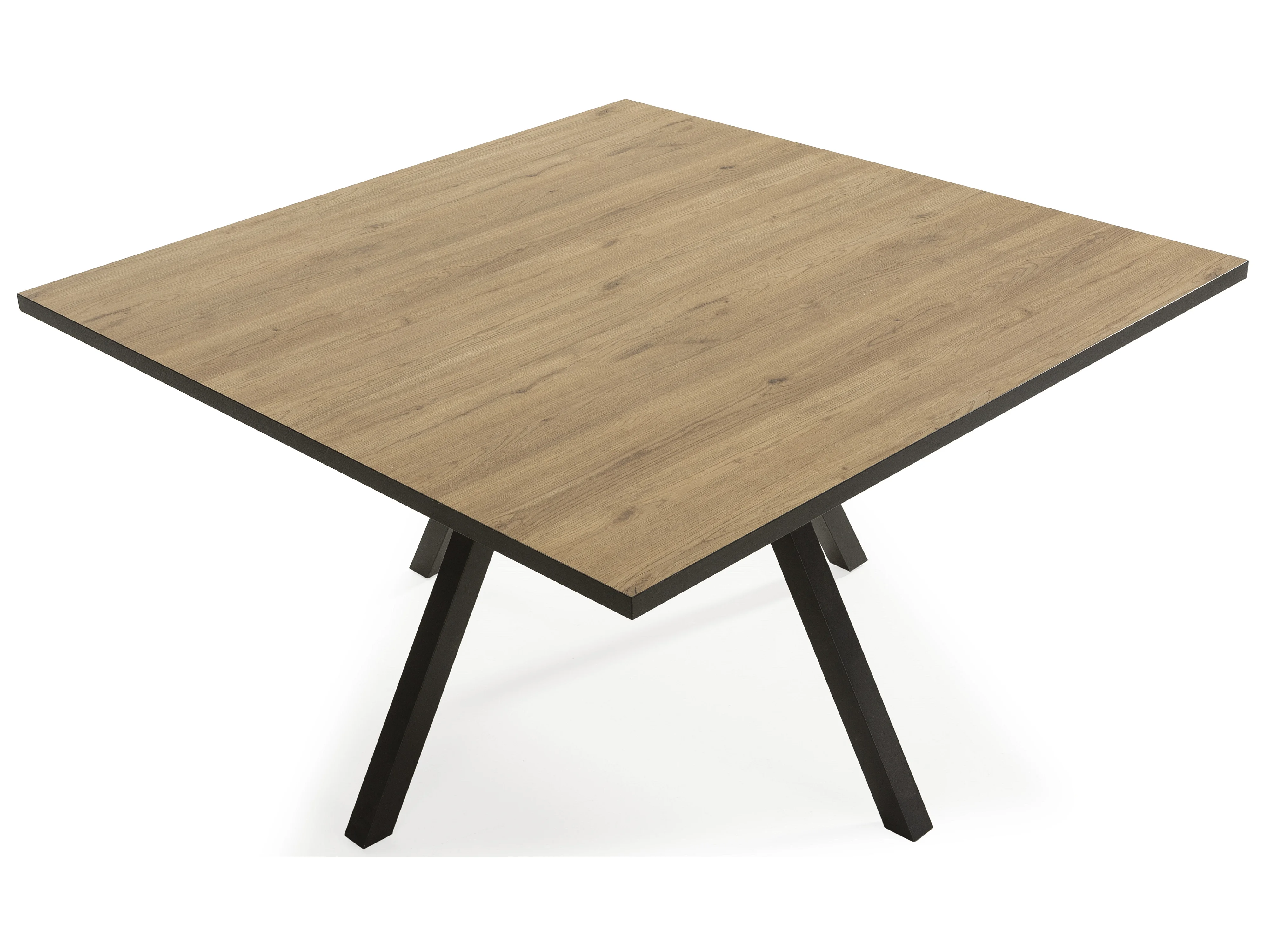 Table à manger carrée en mélamine naturel avec pieds en métal laqué noir - Longueur 136 x Profondeur 136 x Hauteur 77 cm