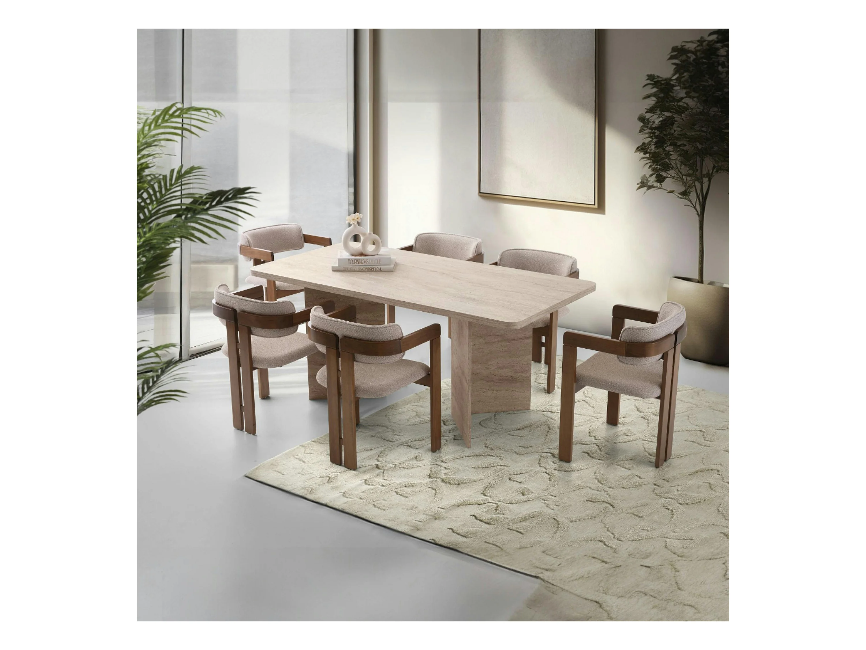 Table à manger design effet travertin pieds V 180 cm MARFA