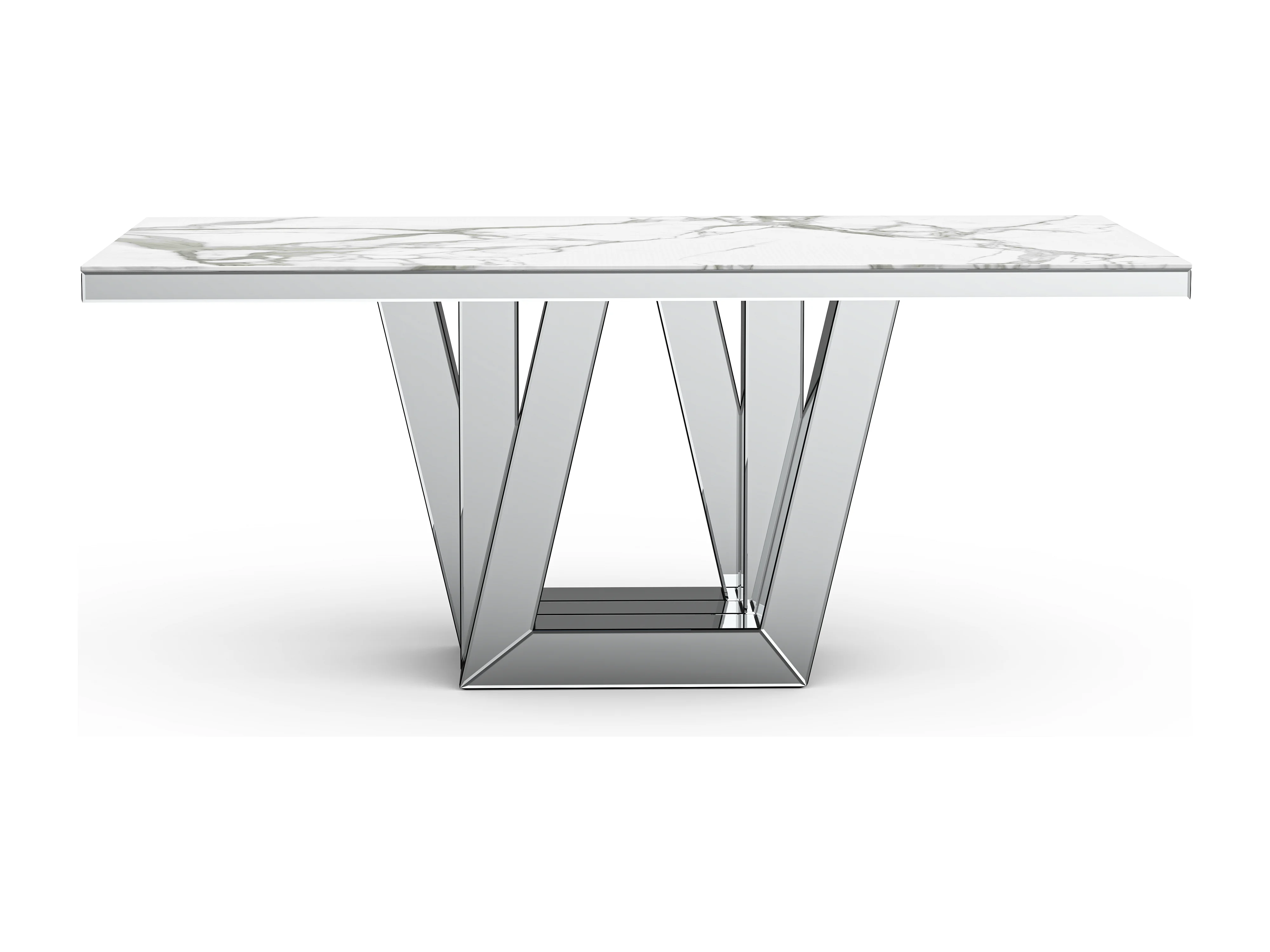 Table à manger ELEGANCE miroir plateau marbre blanc