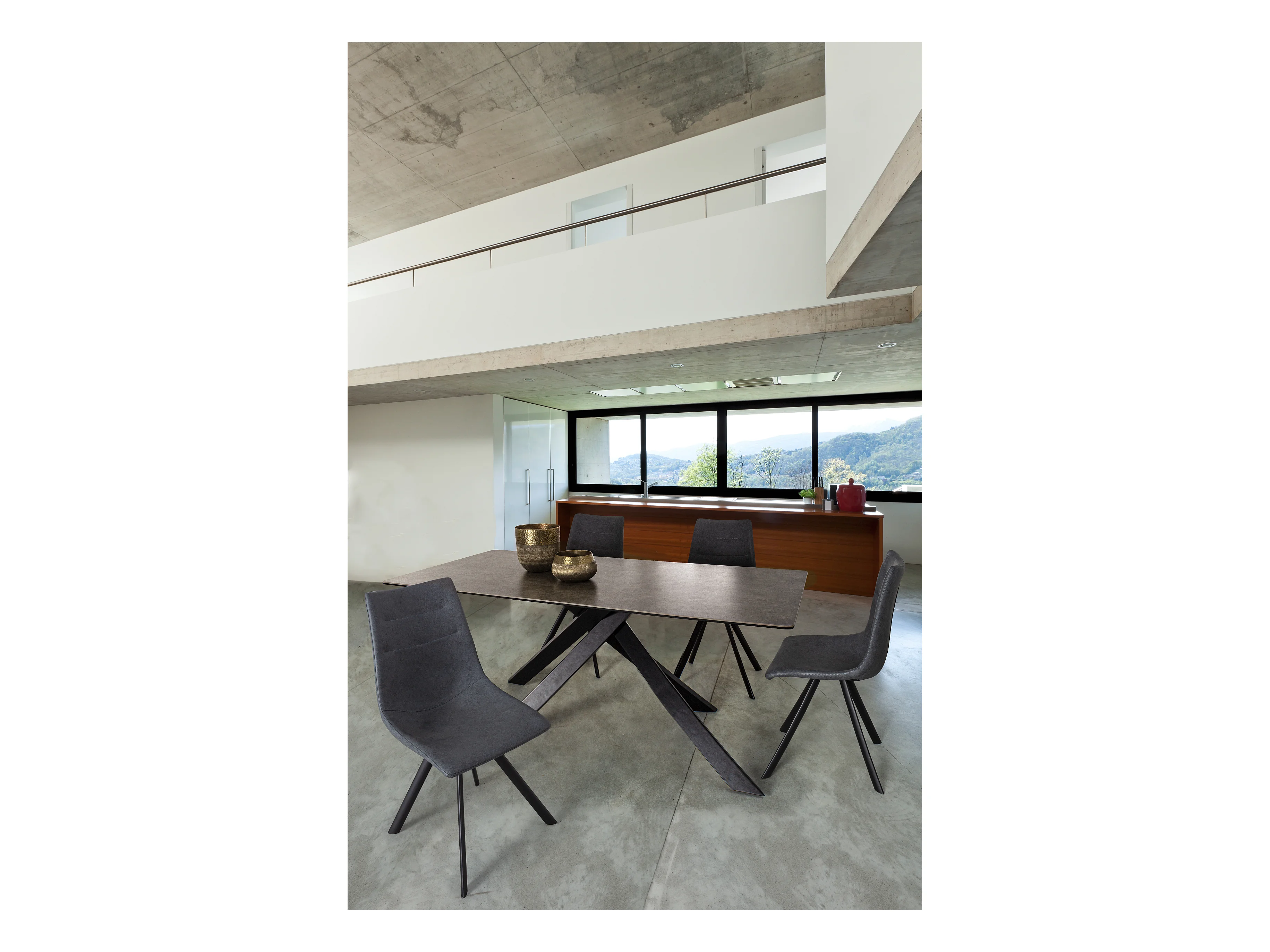 Table à manger en acier et céramique bicolore Medy L 180cm