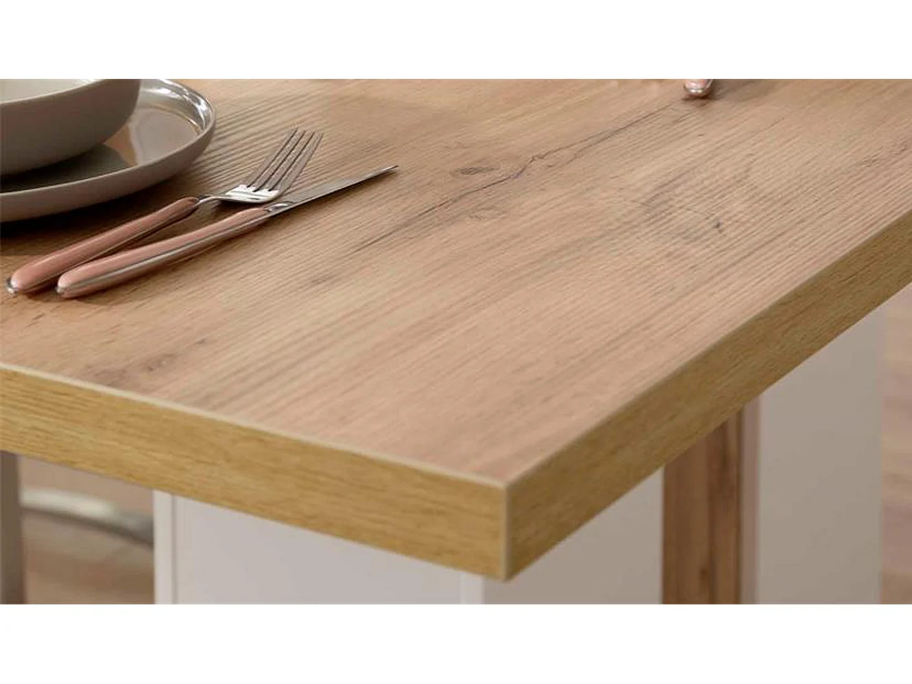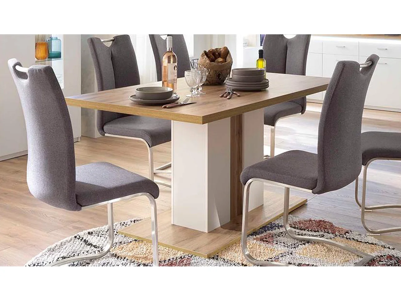 Table à manger en bois coloris blanc/chêne wotan - L.160 x H.77 x P.90 cm