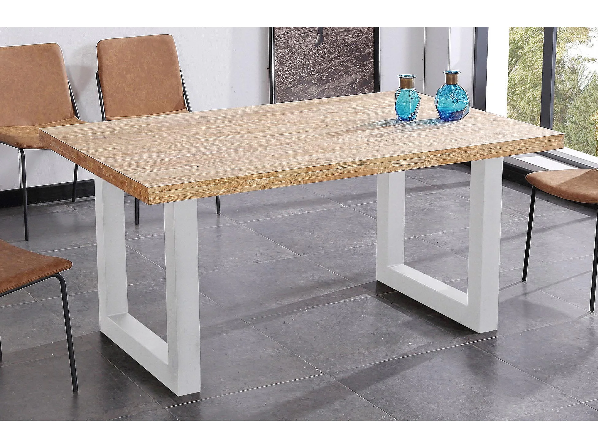 Table à manger en bois coloris chêne nordique / pieds blanc - Longueur 160 x profondeur 100 x hauteur 75 cm