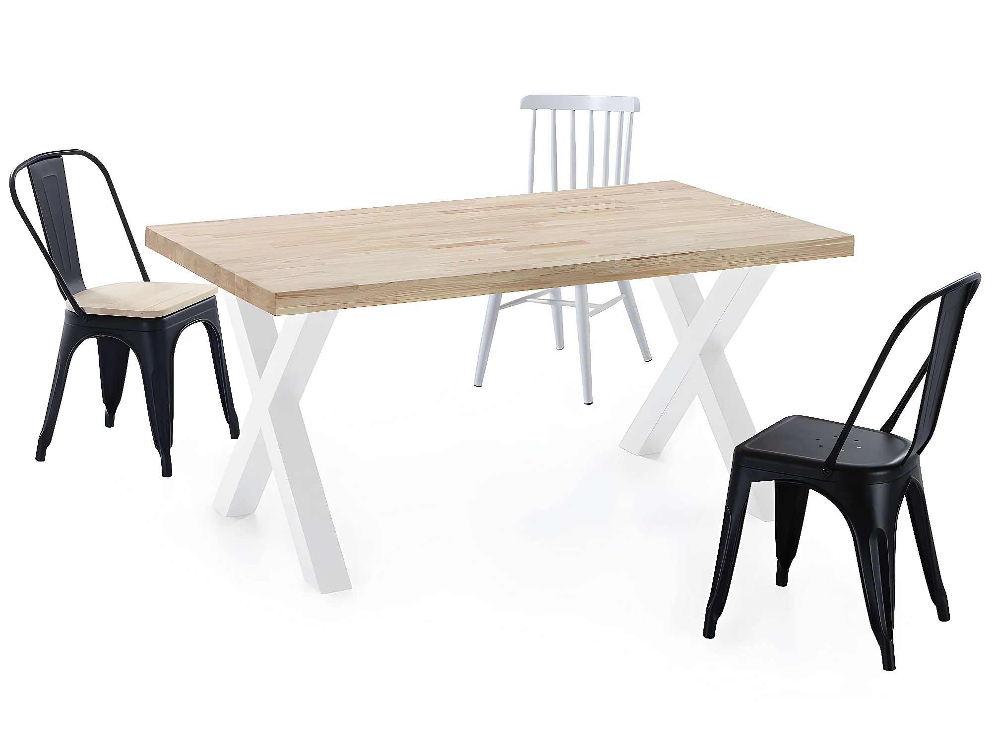 Table à manger en bois coloris chêne nordique / pieds blanc - Longueur 160 x profondeur 90 x hauteur 76 cm