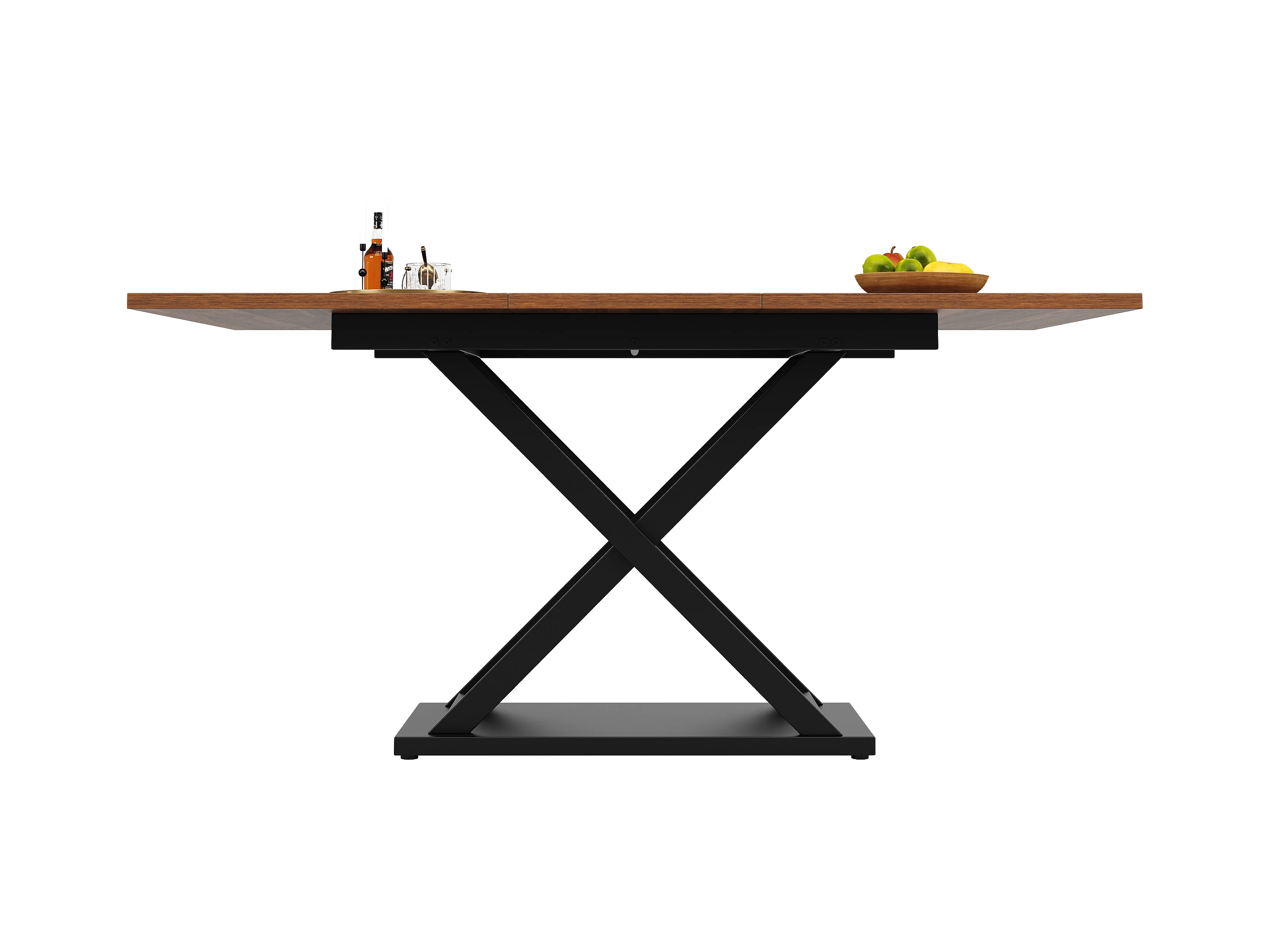 Table à manger en noyer - Table à manger extensible avec pieds croisés en fer noir - pour cuisine et salon