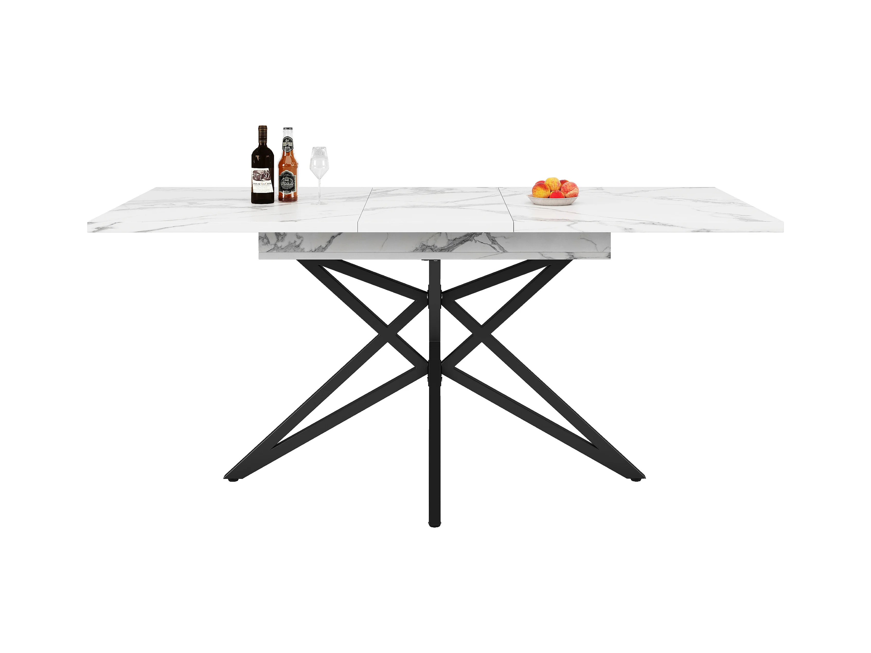 Table à manger extensible - 120 /160 x 80 x 66.1 cm - pieds en forme d'étoile - MDF + Métal - blanc