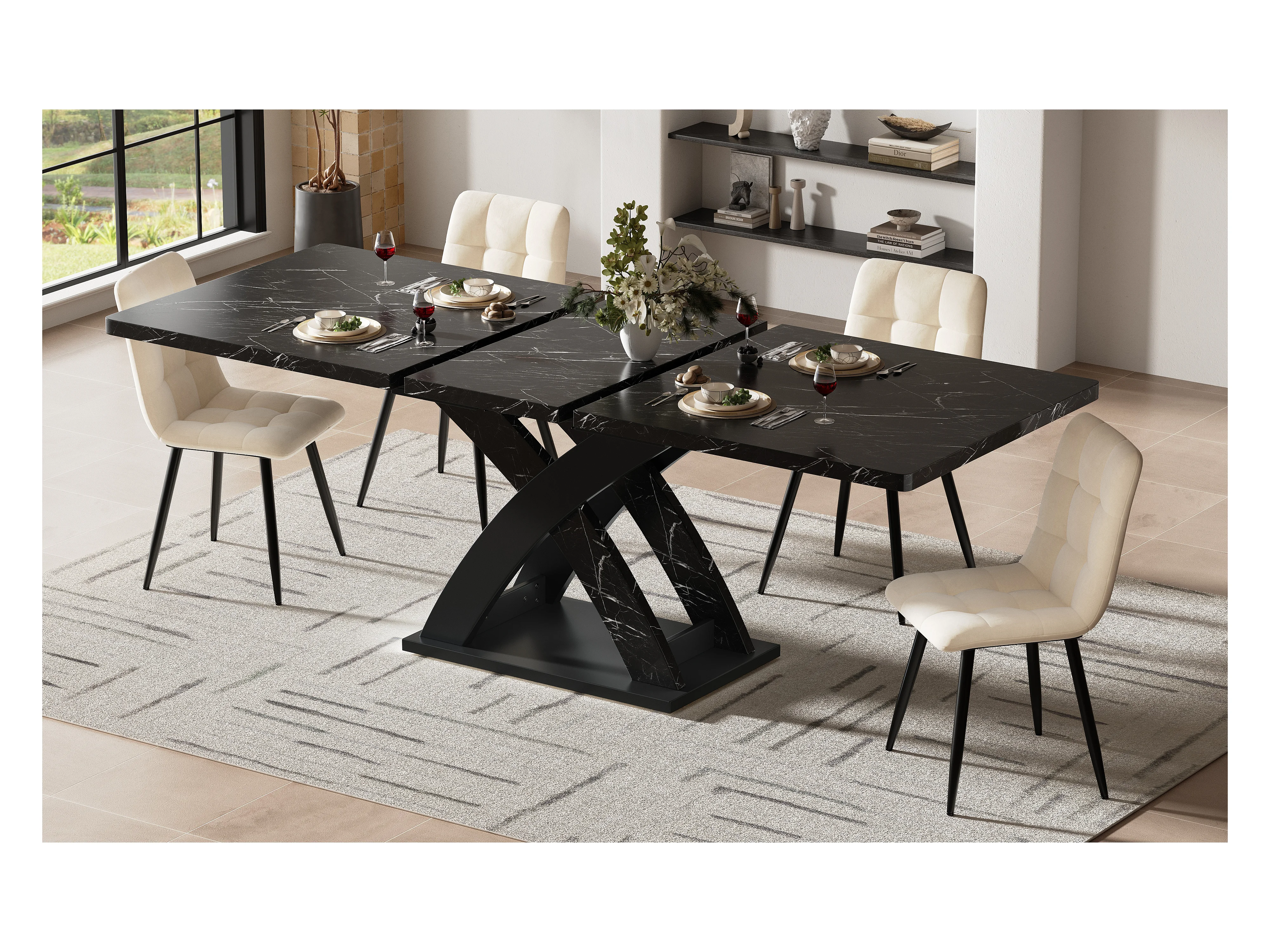 Table à manger extensible 120-160 x 80 x 75 cm - pour 6 personnes - MDF + Métal - noir