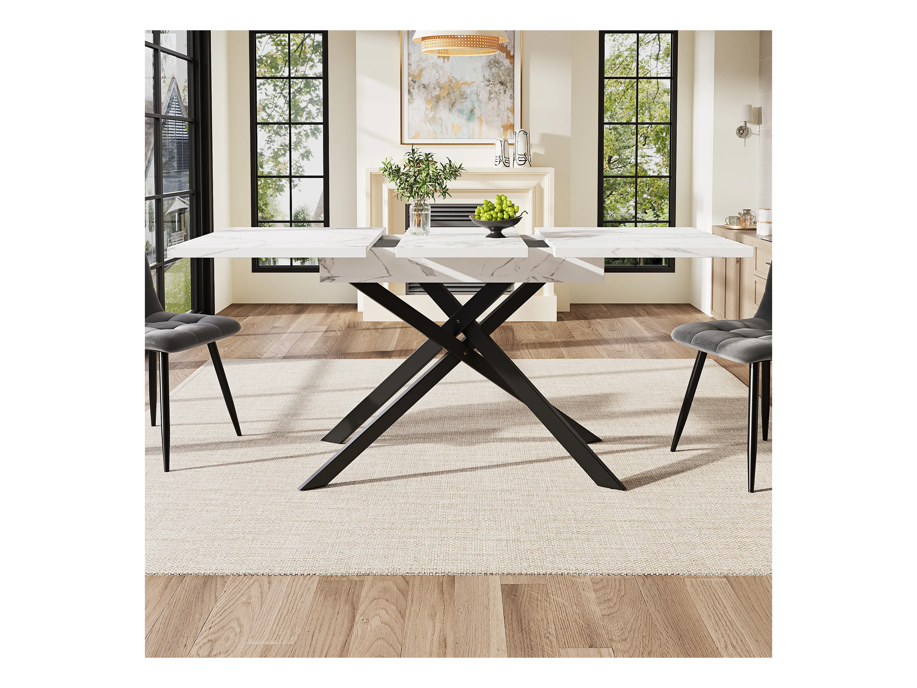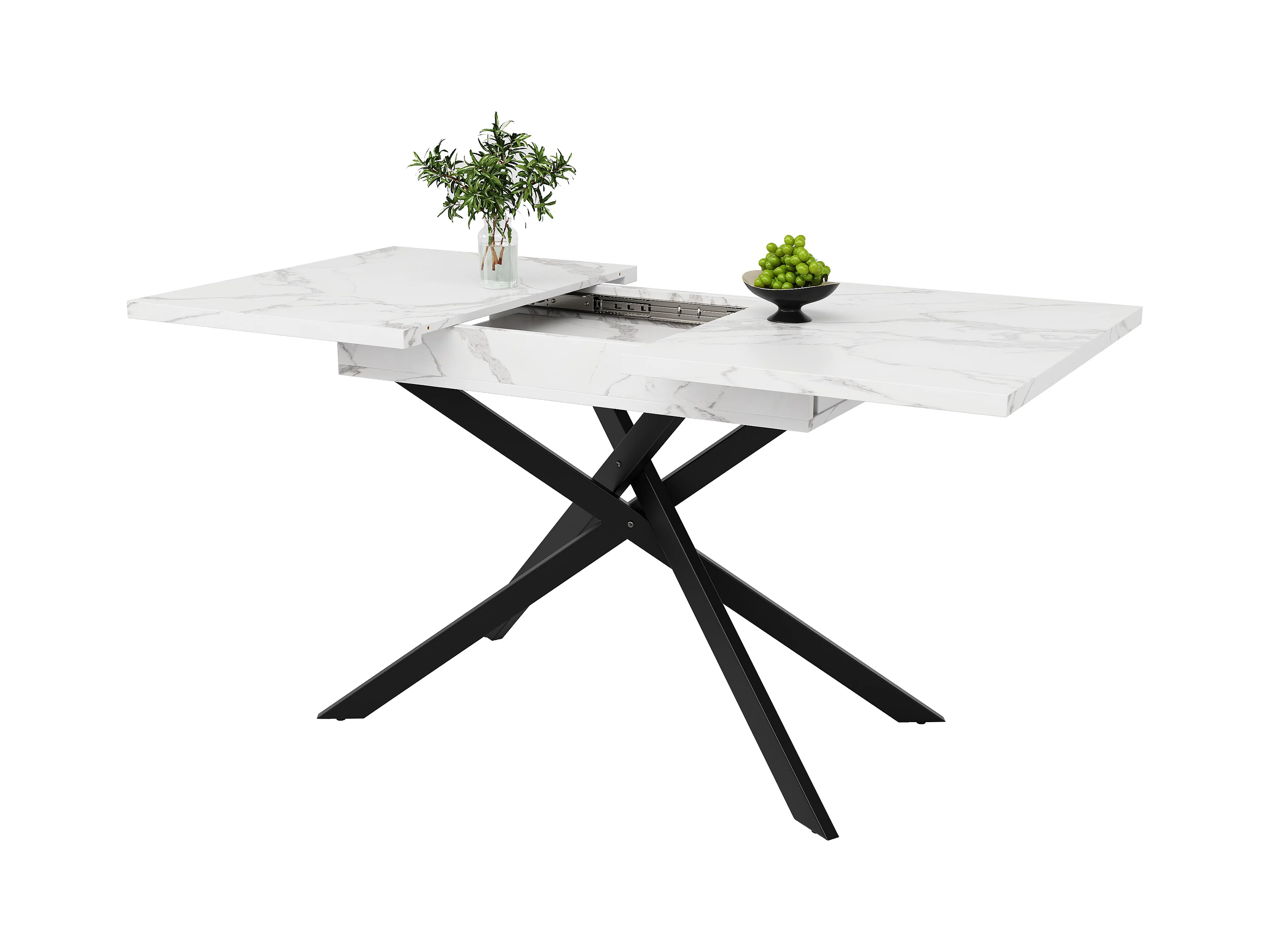 Table à manger extensible - 120/160 x 80 x 76.5 cm - pieds en fer croisés noirs, panneau en MDF - blanc