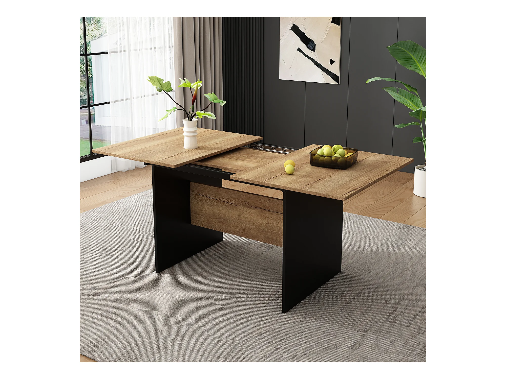 Table à manger extensible 140-180x80cm Style Minimaliste Bois Couleur naturelle Pour 4-6 Personnes