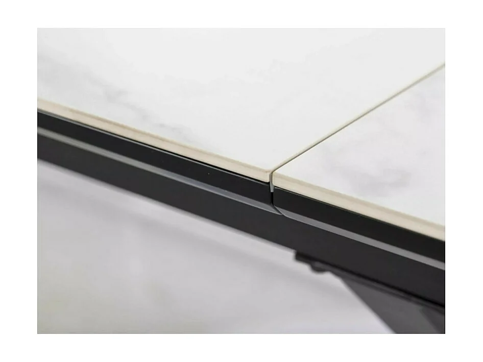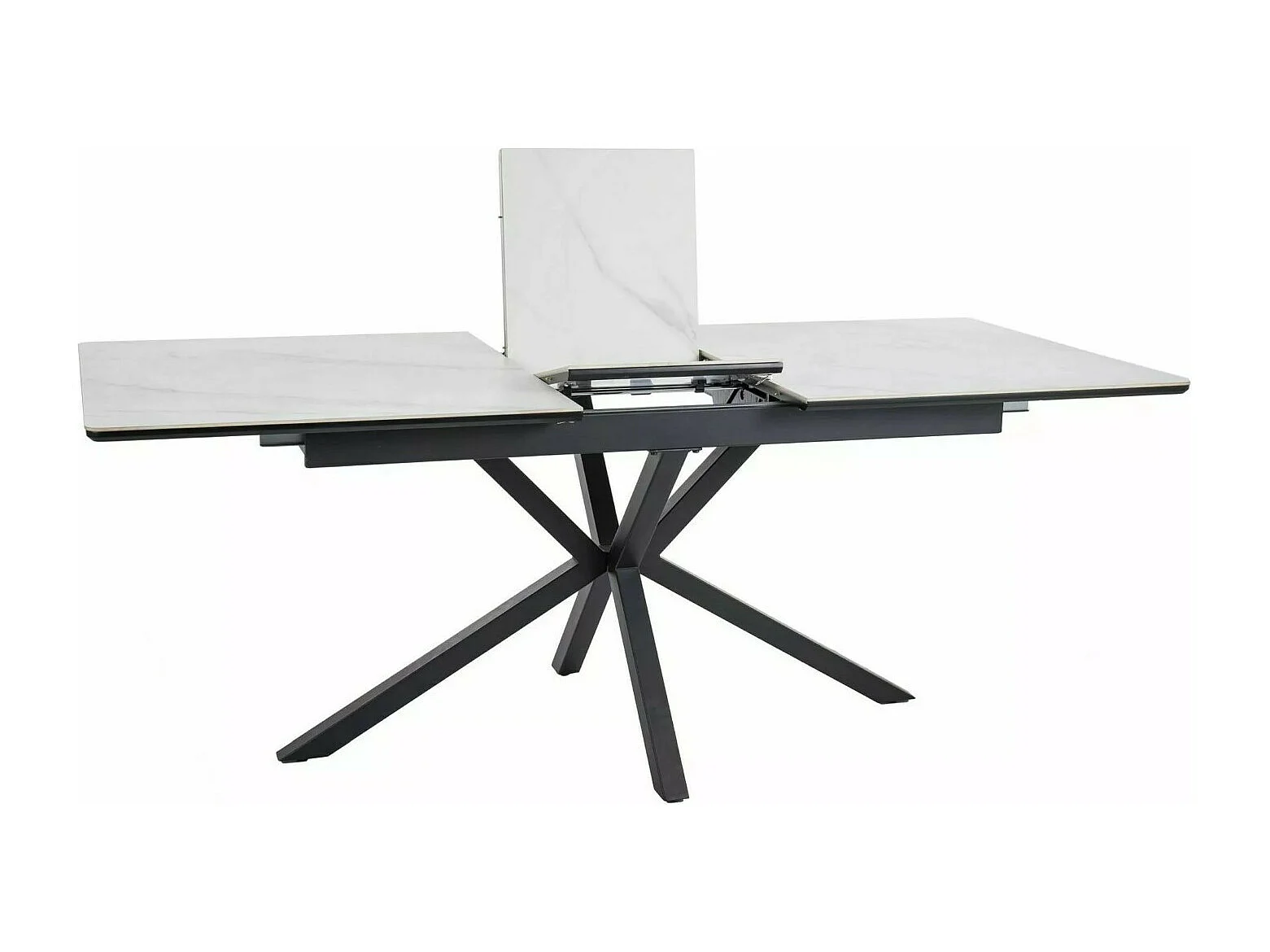 Table à manger extensible 160-200 cm en céramique aspect marbre blanc Tommy